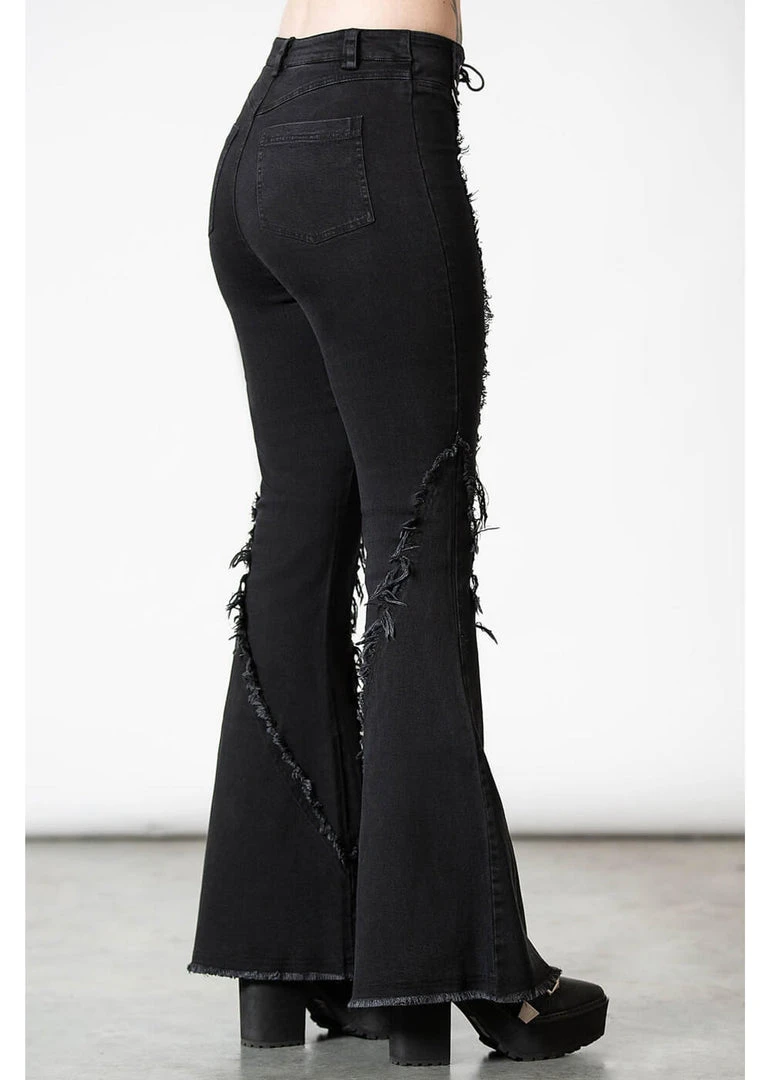 The bad-ass vibes of the Slash-look, but without the holes, isn’t that exactly what you need? The lacing in the front looks absolutely 70’s and she closes with a zipper on the side. Pockets on the backside and belt loops are a must, too.