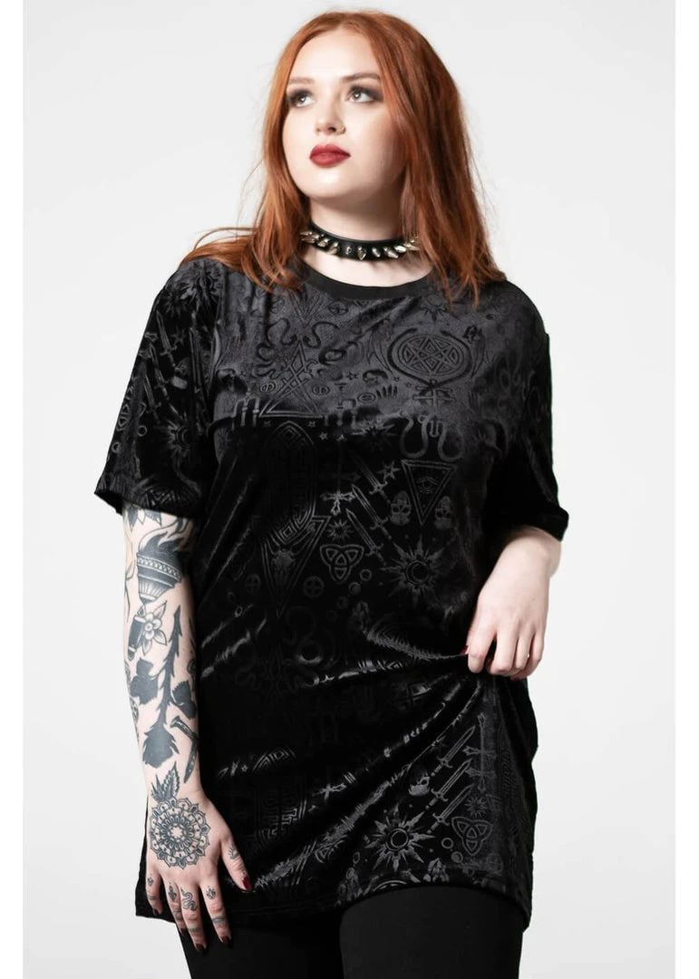 An effortless witchy look for him and her, with breathtaking burnout-velvet with stretch, with all your favourite occult patterns.
