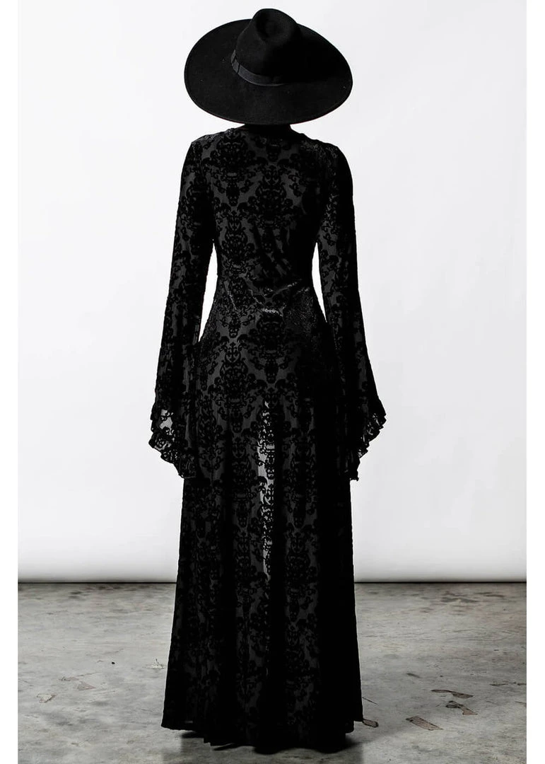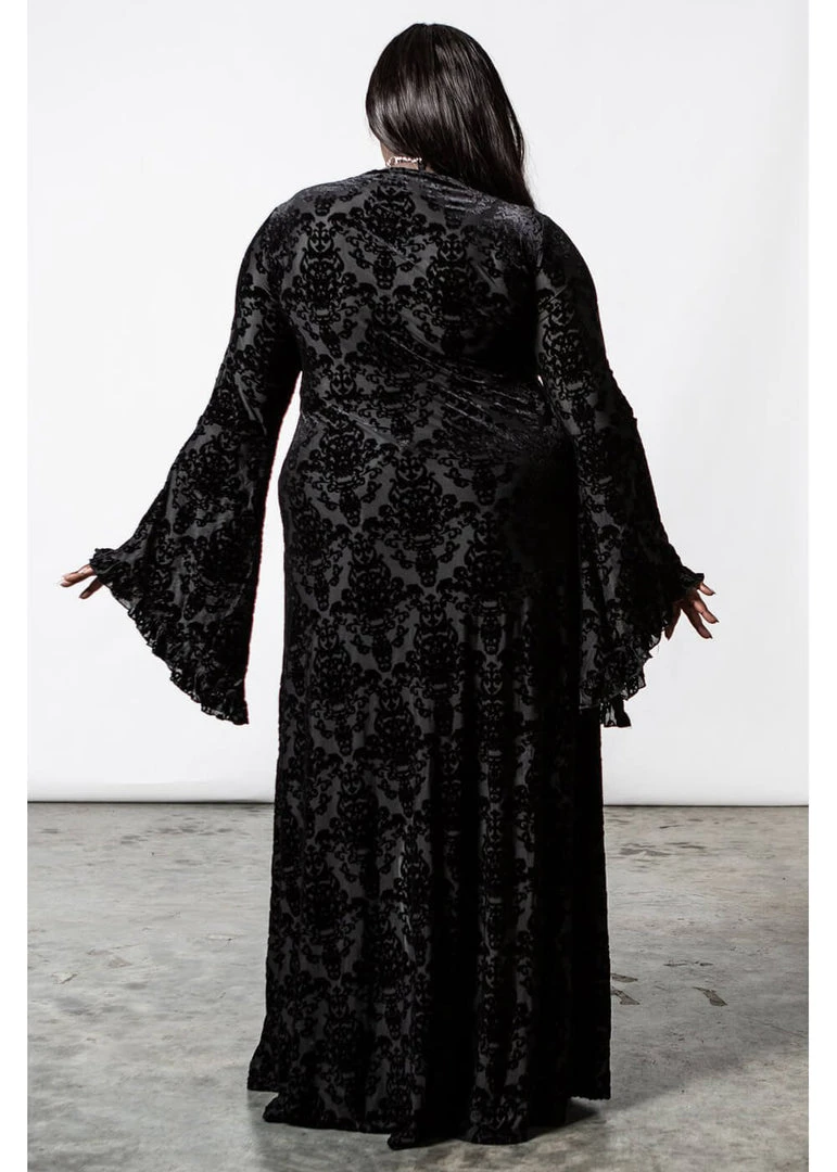 Inferno takes your look to new heights, with her breathtaking burnout-velvet with stretch, that is semi-transparent around the occult velvet print.