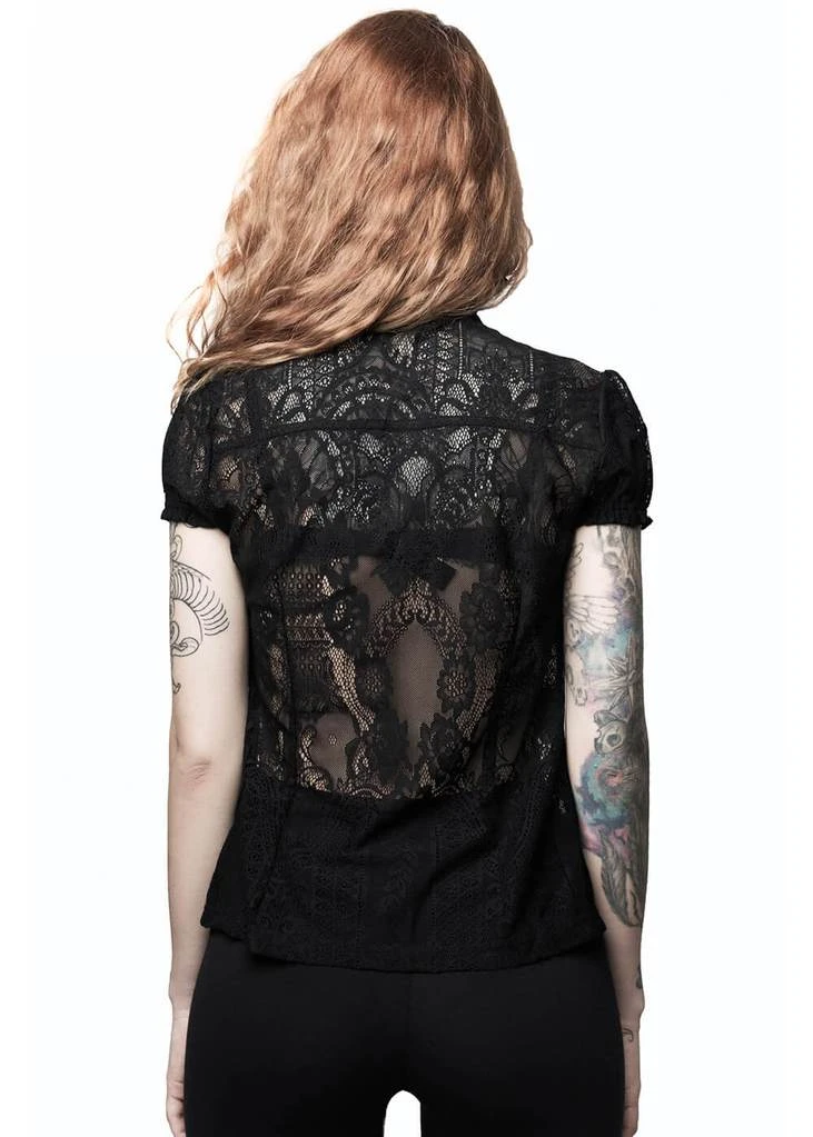 With her soft lace she feels like a fairy tale… Liana closes with smooth buttons across the front up to high in the neck, which is accentuated by the satin ribbon around the stand up collar. So boudoir and so 40’s with her puffy sleeves and lace ruffles!