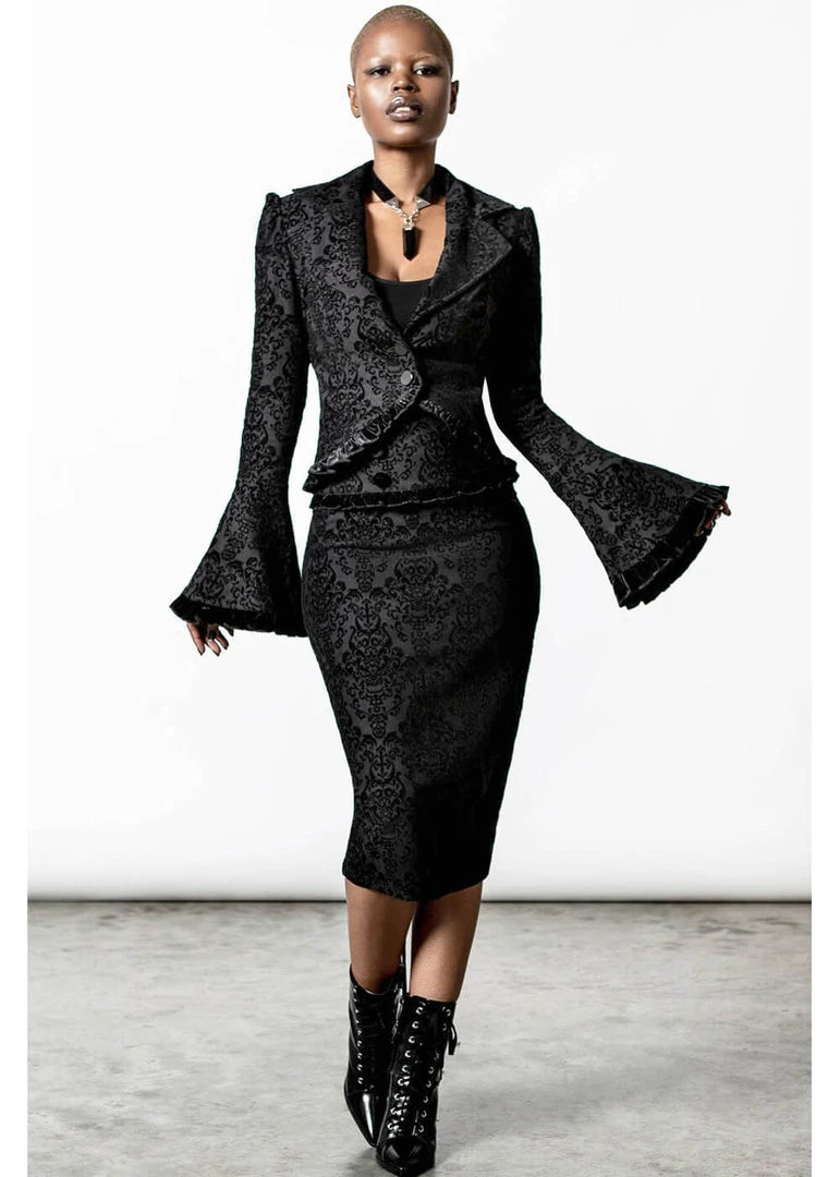Pax Aeterna is the perfect mix of a little mystery, with her breathtaking occult velvet print, and Vavavoom chic with her elegant fit thanks tot he strong fabric with fine stretch, and of course the decorative lacing in the back.
