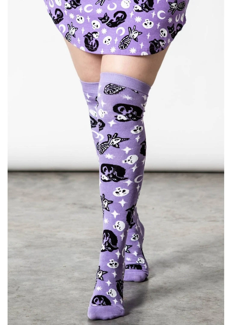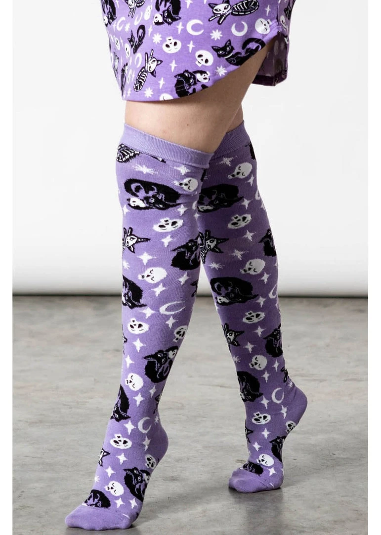 Killstar Purr Off Cat Kneesocks Purple