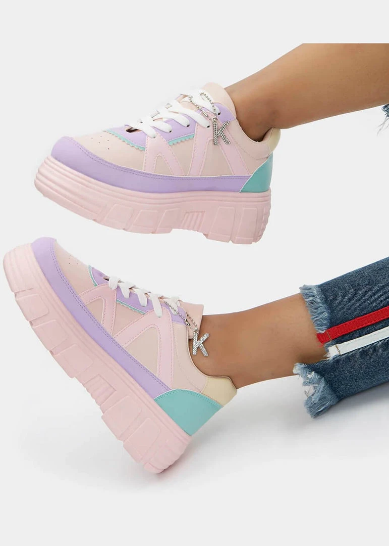 All your pastel dreams are coming true with Aiya! You feel like an ice cream with her joyful pastel shades of pink, purple and mint. They don’t only cover the high quality faux-leather, even the platform sole is baby-pink, melt….