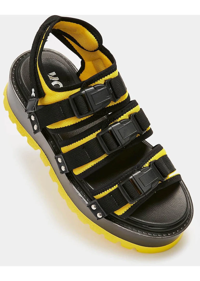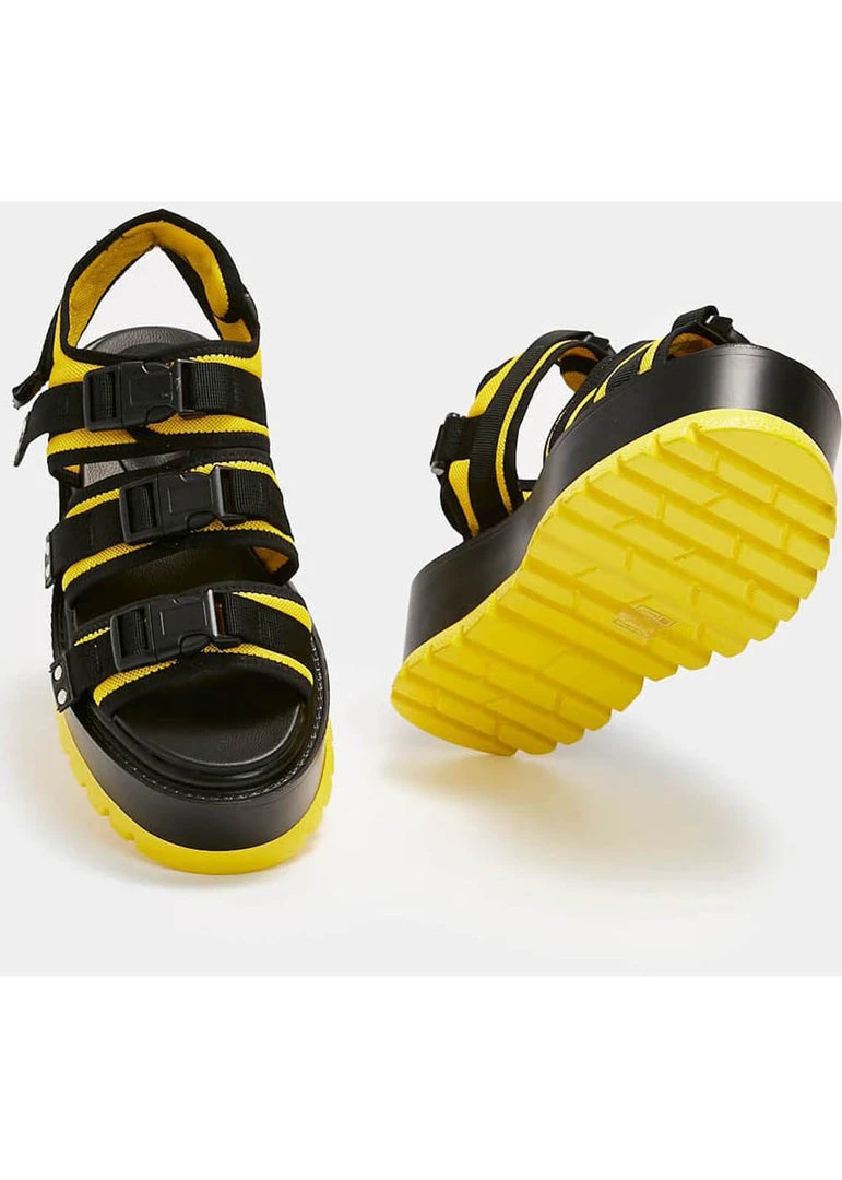 The Asteroid shoes are out of this world amazing! You’re sure to stand out in these sandals, because of the bright yellow sole, the buckles or the firm equally bright yellow powermesh. You’re instantly teleported to new heights because of the 5 cm heel, with a 4 cm platform. They close with the Velcro along the heel. The other buckles aren’t adjustable.