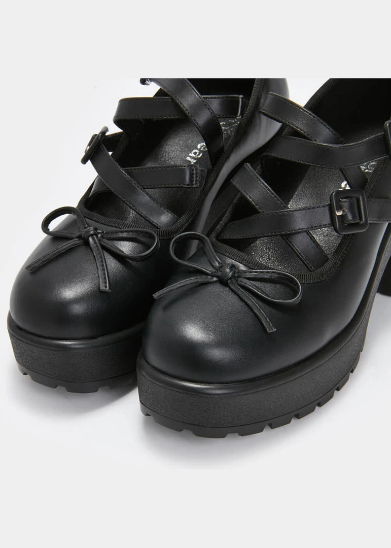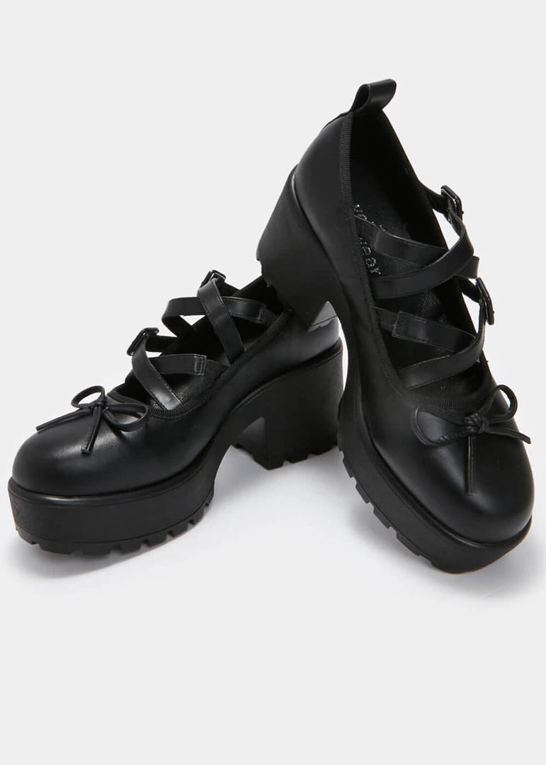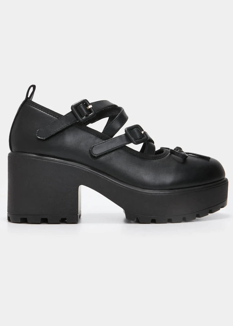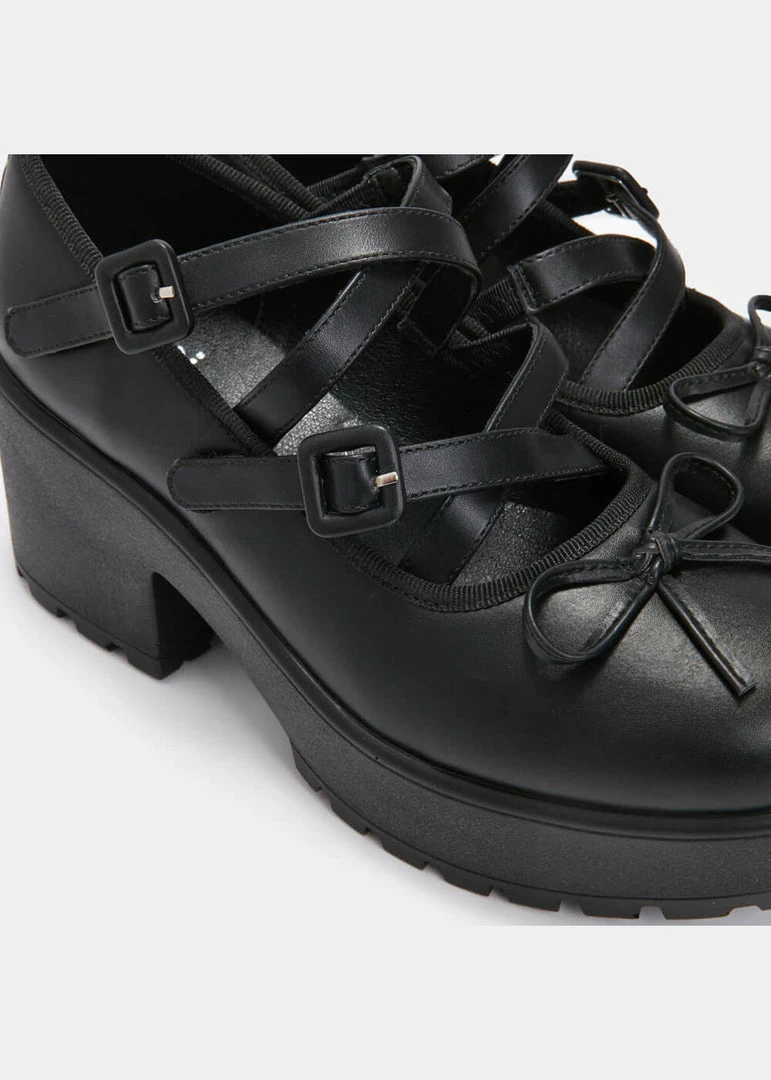 Margot is exactly the type of Mary Janes you’ve always wanted, with her crossed adjustable straps with buckles and bows! The heel is 7,5 cm, so without the 5 cm platform there’s only a height difference of 2,5 cm, how lovely 😉 The outside is covered in faux-leather, which, just like the rest of the shoe, is 100% vegan.