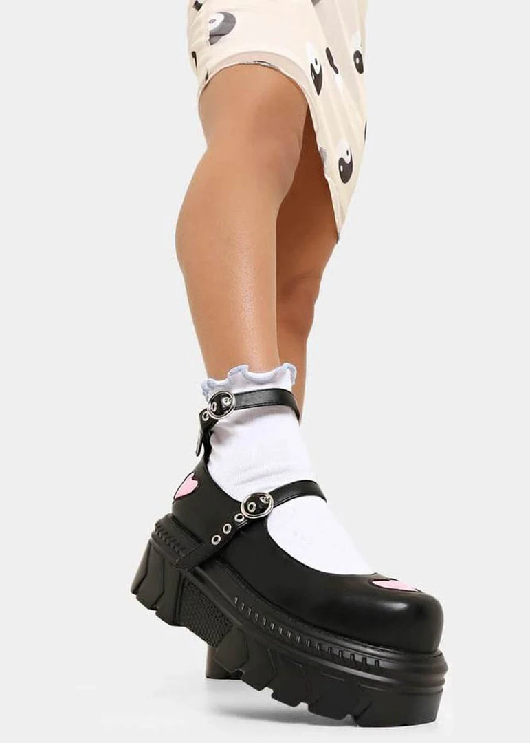 There is nothing subtle about these sandals, and the hearts make them even sweeter 😉 The continuous soles of 6 cm are deep-treaded, even on the sides. They close with 2 adjustable buckles. Slightly playful, a bit sweet and yet gorgeously tough! These shoes are made of fine faux-leather and 100% vegan.