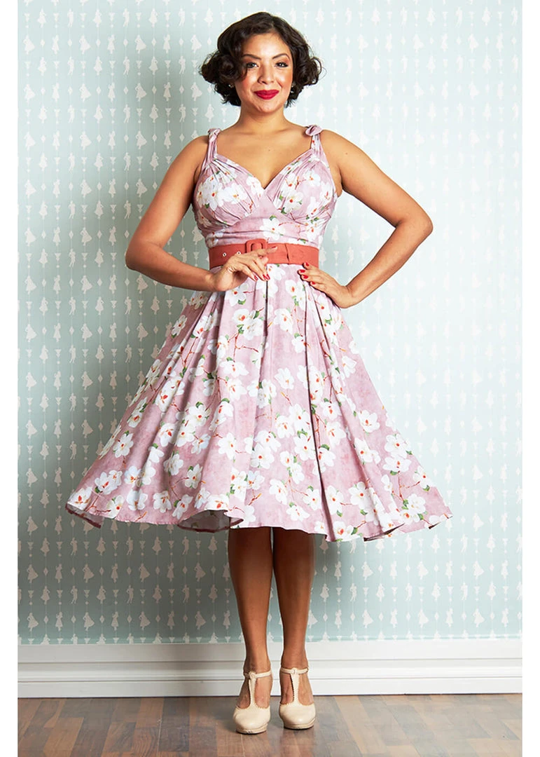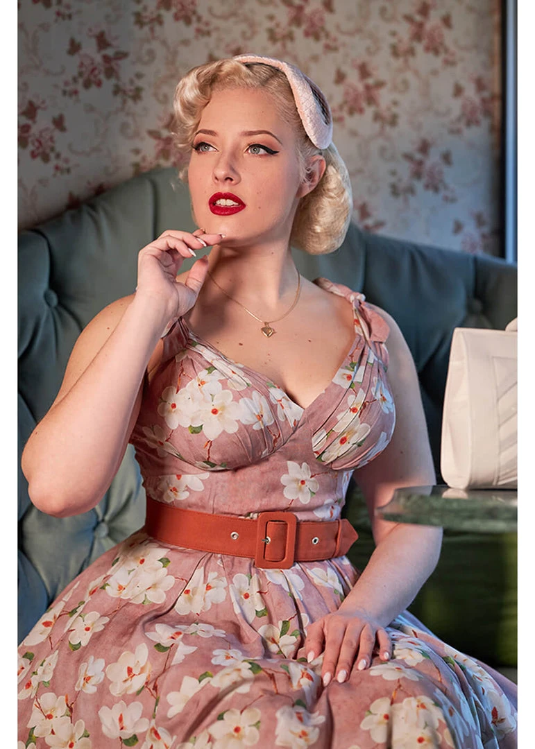 Chana a joy to the eyes with her bows at the shoulders for a gorgeous 50’s look. The figure seams in the front and back make for a lovely fit, together with the pleats at the chest and the viscose without stretch.