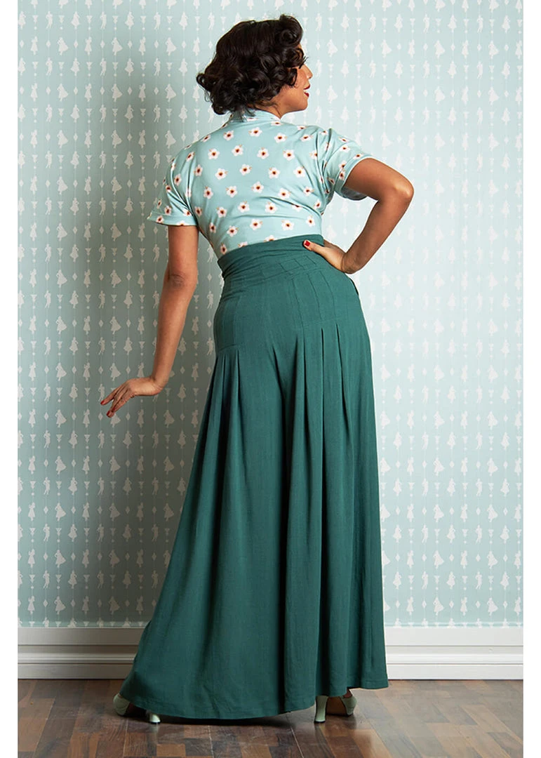 Whether you wear her with an elegant 40’s blouse or a cozy longsleeve, Kenza will give you a head-to-toe elegant look! Her high waist is lovely close-fitting, and from the hips, inverted pleats flare into insanely wide legs. She even has pockets!
