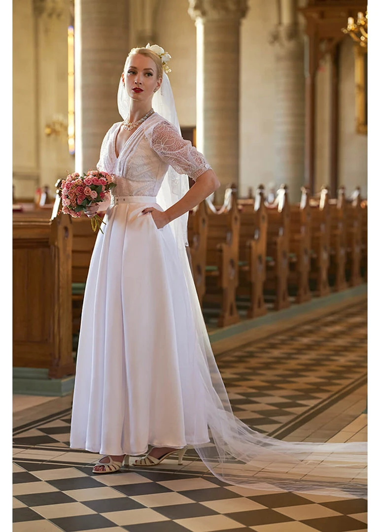 The loose belt accentuates the waist, giving you killer curves! From pleats in the waist the skirt flows into a stunning maxi skirt from heavy non-static satin with pockets. With a length of 1,70m she hits the ground and is being made in Transsylvanië.