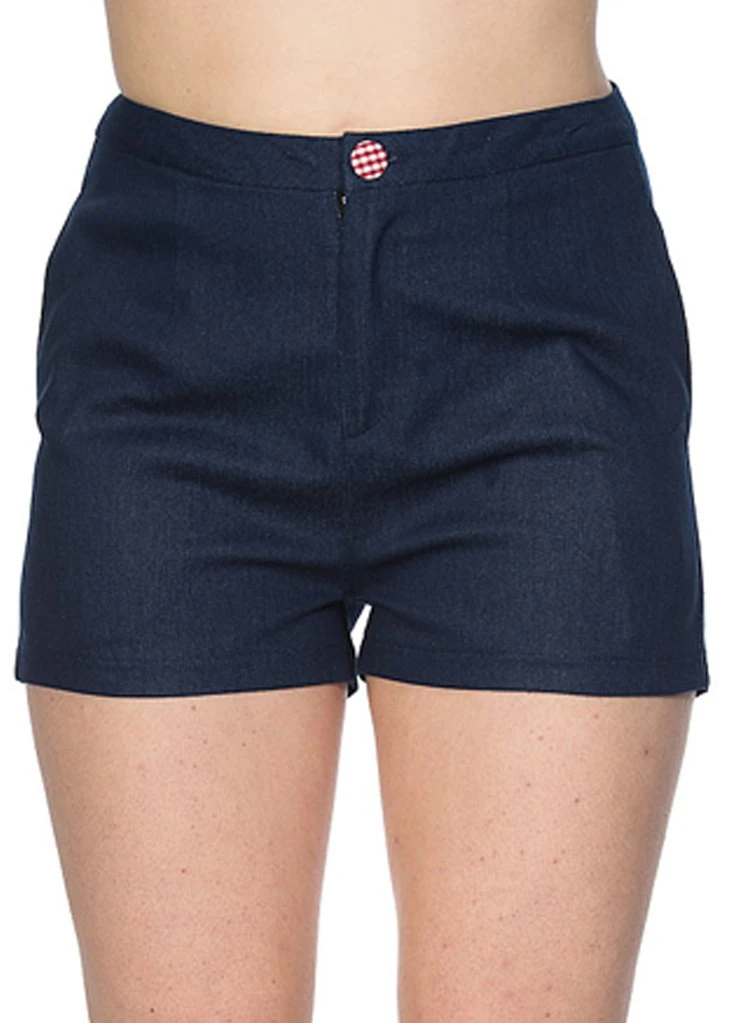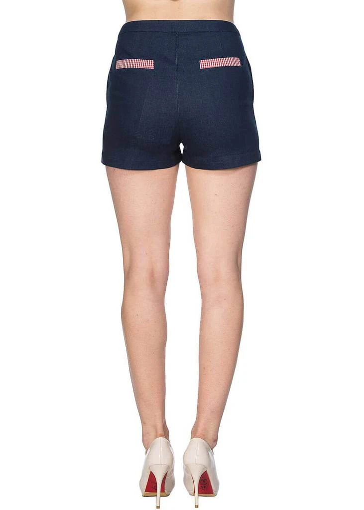 Her denim look is a mix of cotton and has a lovely stretch. Perfect for having a bite at the picnic or of course at a rockabilly party, because with her gingham accents she’s stunning anywhere. She closes with a button and zipper on the front.