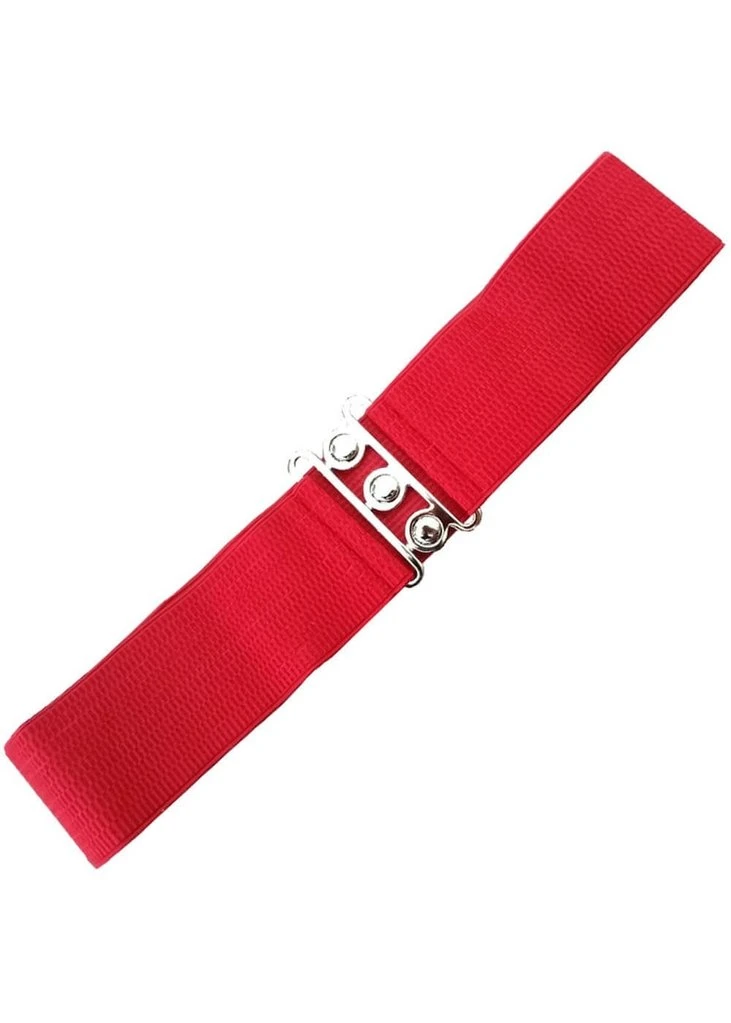 Complete your look with this fun elastic belt by Banned! It closes with a silver coloured click buckle. Perfect to combine with all the gorgeous dresses for that fabulous 50’s silhouette!
