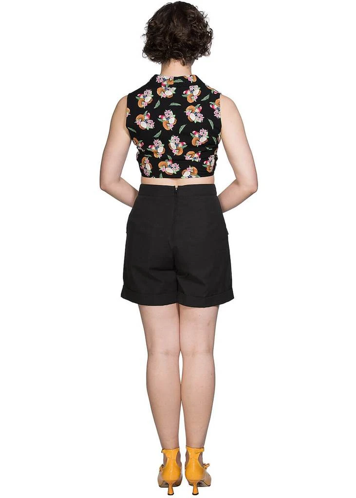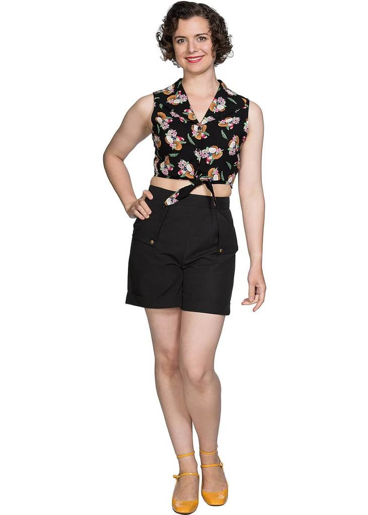 Tropical tiki, rockabilly or simply enjoying summer, the coconuts on this cutie make you happy! This knotted blouse is a shorter model that reaches down to the waist. Making her just as cute with cool jeans as with a high waist skirt! She’s made of a knitted, airy viscose with no stretch, making it so the only thing missing is a coconut in hand.