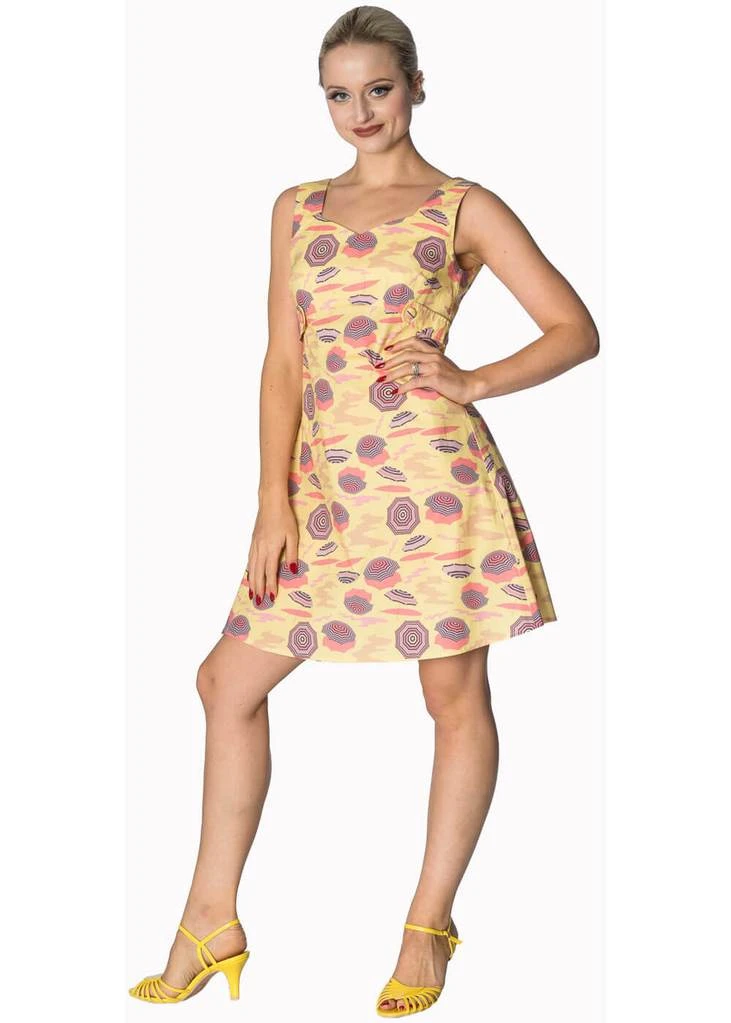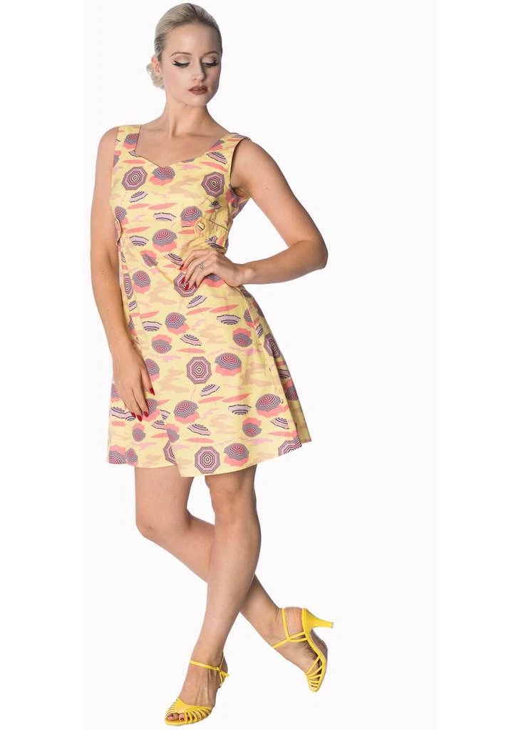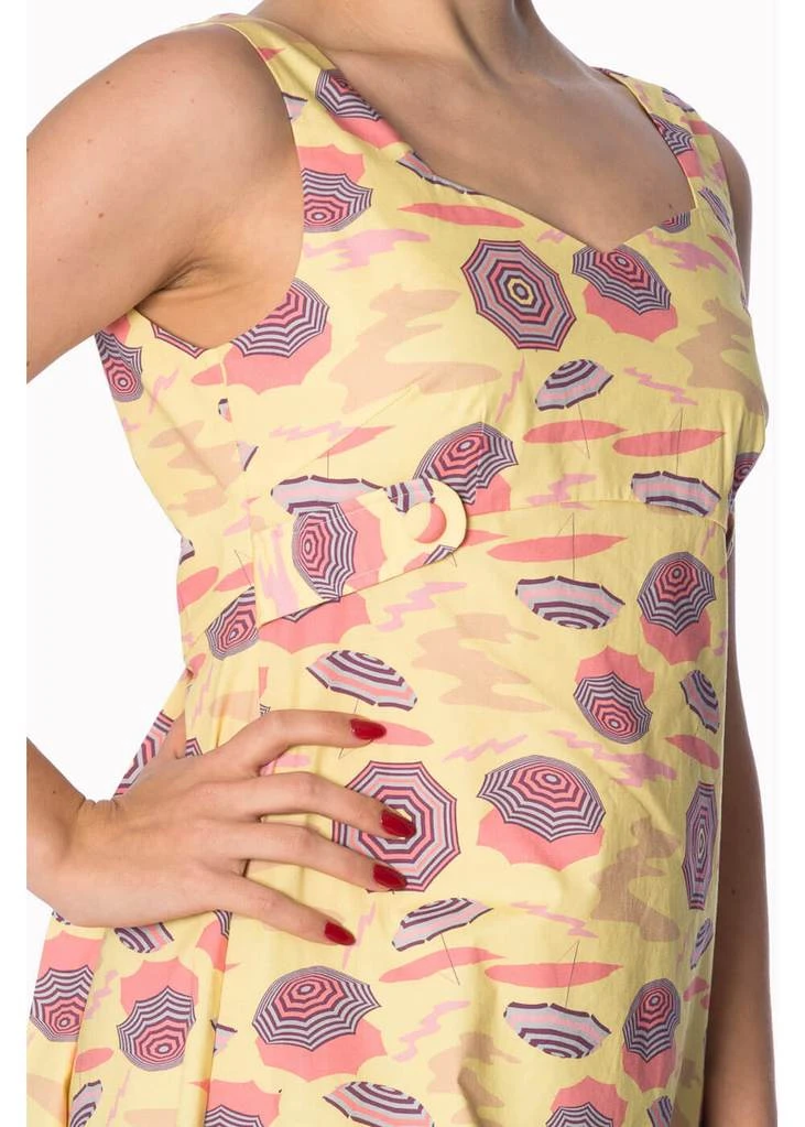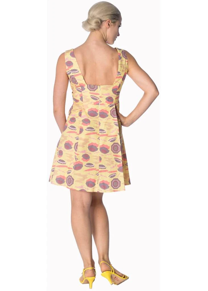 Haar vrolijke parasols ademen zon zee en strand. En dan nog die verleidelijke lage rug. Met deze jurk hoef je niet in de schaduw te verblijven!
