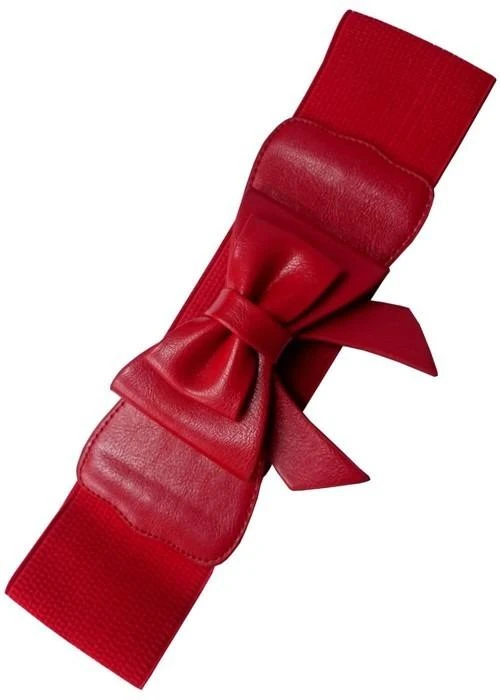 She closes with a hook and eye closure underneath the bow, and is adjustable to two sizes. The bow is made of a beautiful quality lacquer faux leather. Perfect for that lovely line, or a little extra sass for your look!