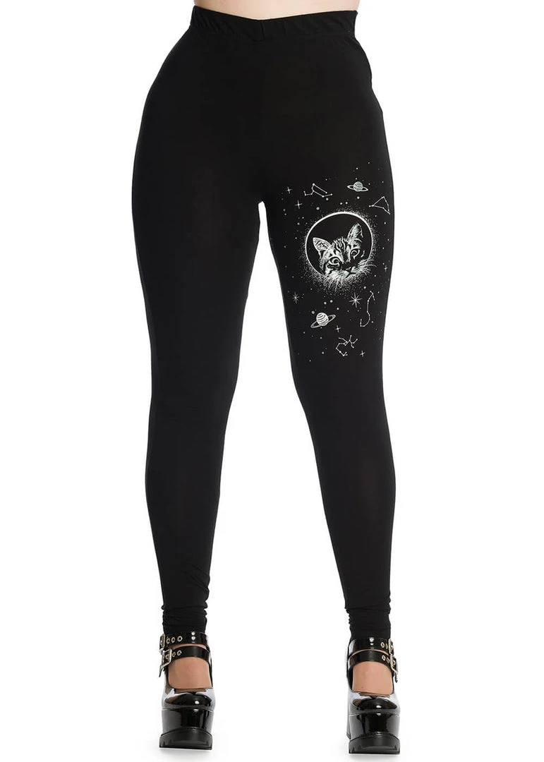 New In Banned Space Cat Leggings Black