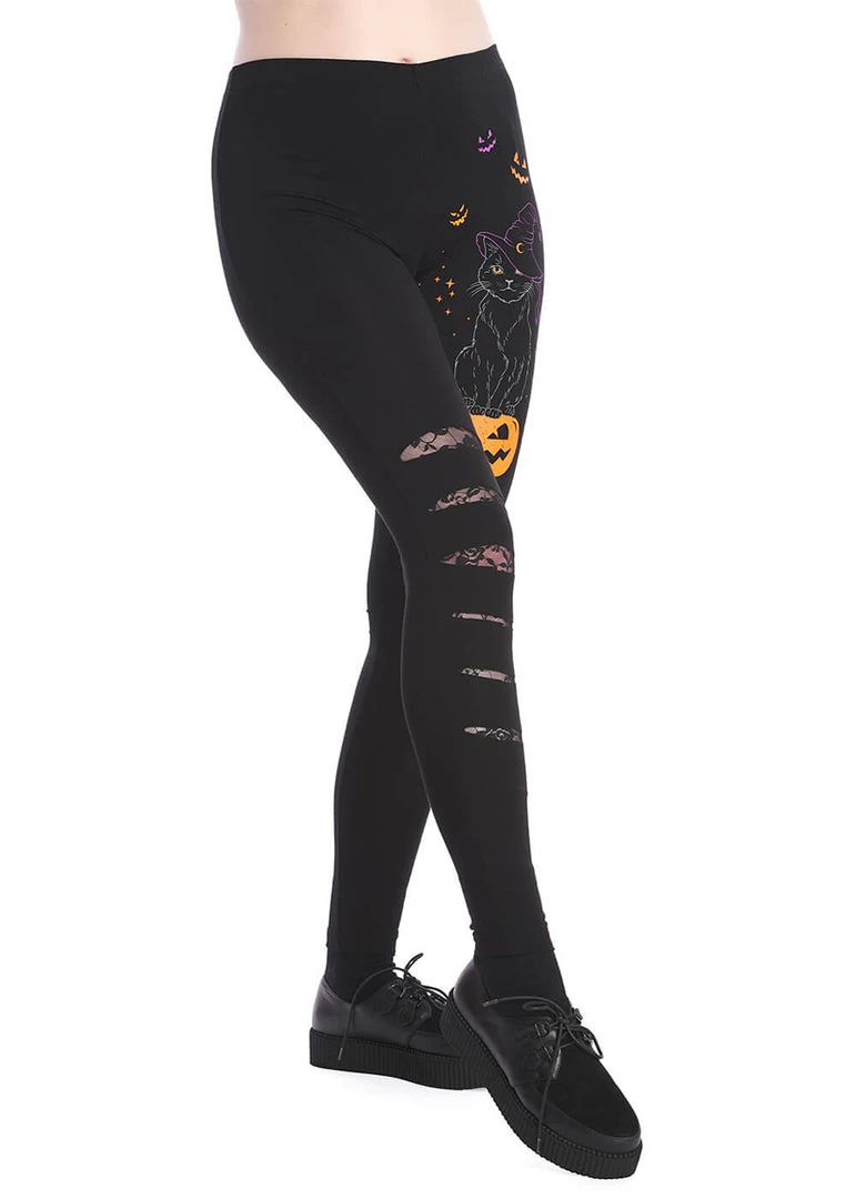 New In Banned Spell On Me Cat Leggings Black