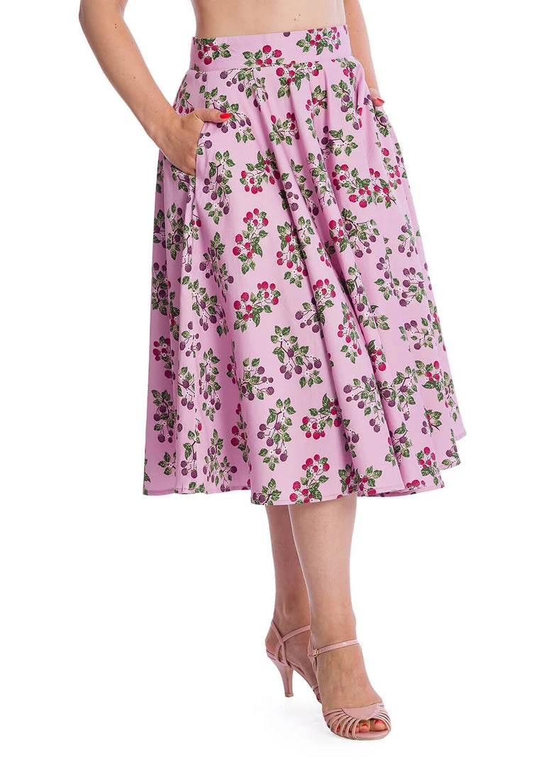 This gem has a classic 50’s silhouette and flares elegantly from the waist. To make those berries even tastier, you can wear her with one of our petticoats!