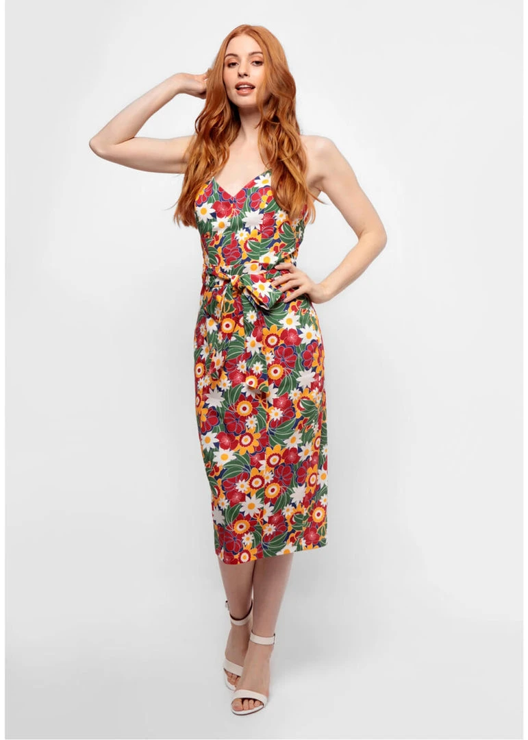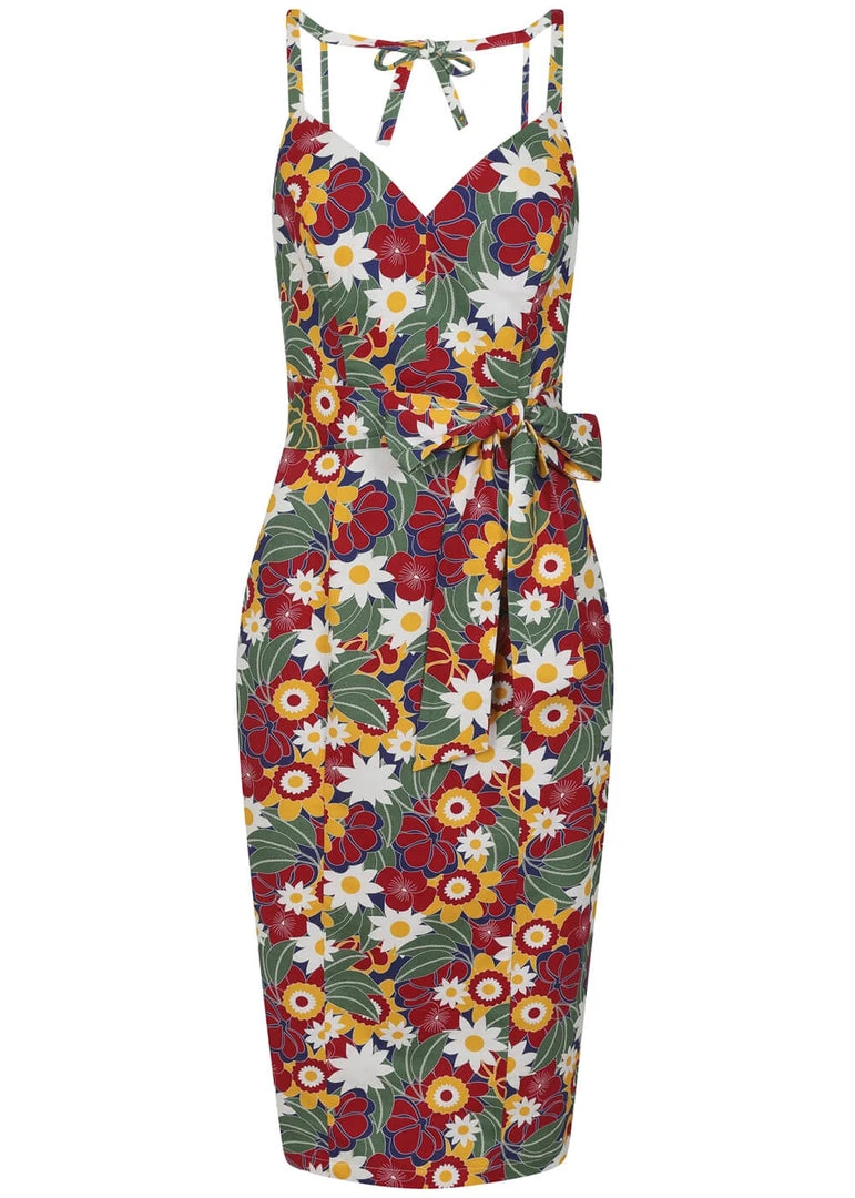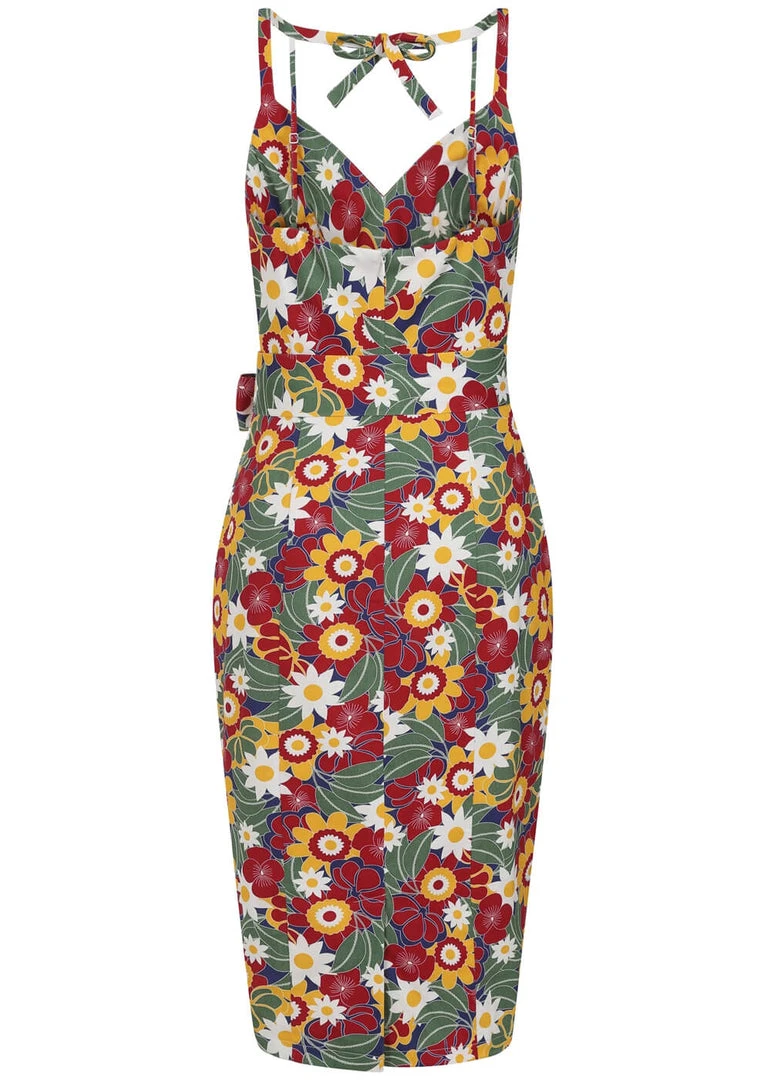 New In Bright & Beautiful Jayleen Tropical Floral 60’s Pencil Dress Multi