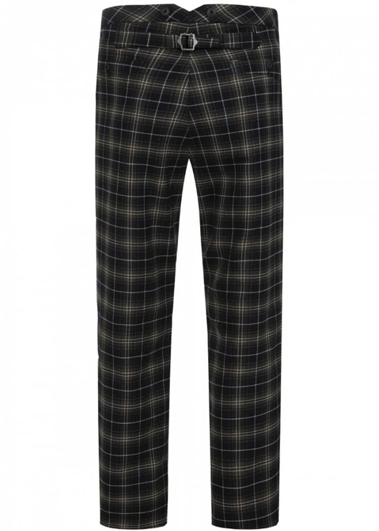 From the waistband, Chuck falls into long trouserlegs, the straight fit gives you enough room to move comfortably. Next to the pockets in the side seams, he also has 2 back pockets with buttons. He closes with a zipper and a hook in the front.