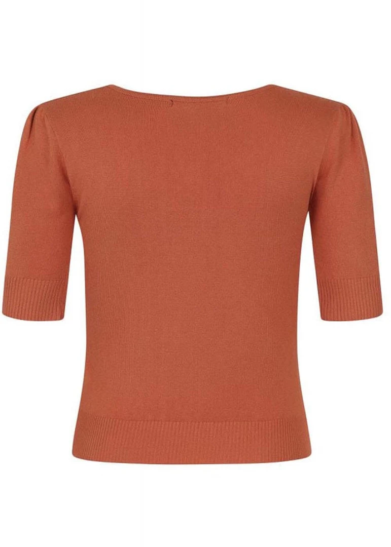 This cutie is made of a lovely soft knitted cotton with stretch and ribbed sleeve ends, making her feel like a dream to wear. She is long enough to be worn with trousers, but very flirty with a high waist model 😉