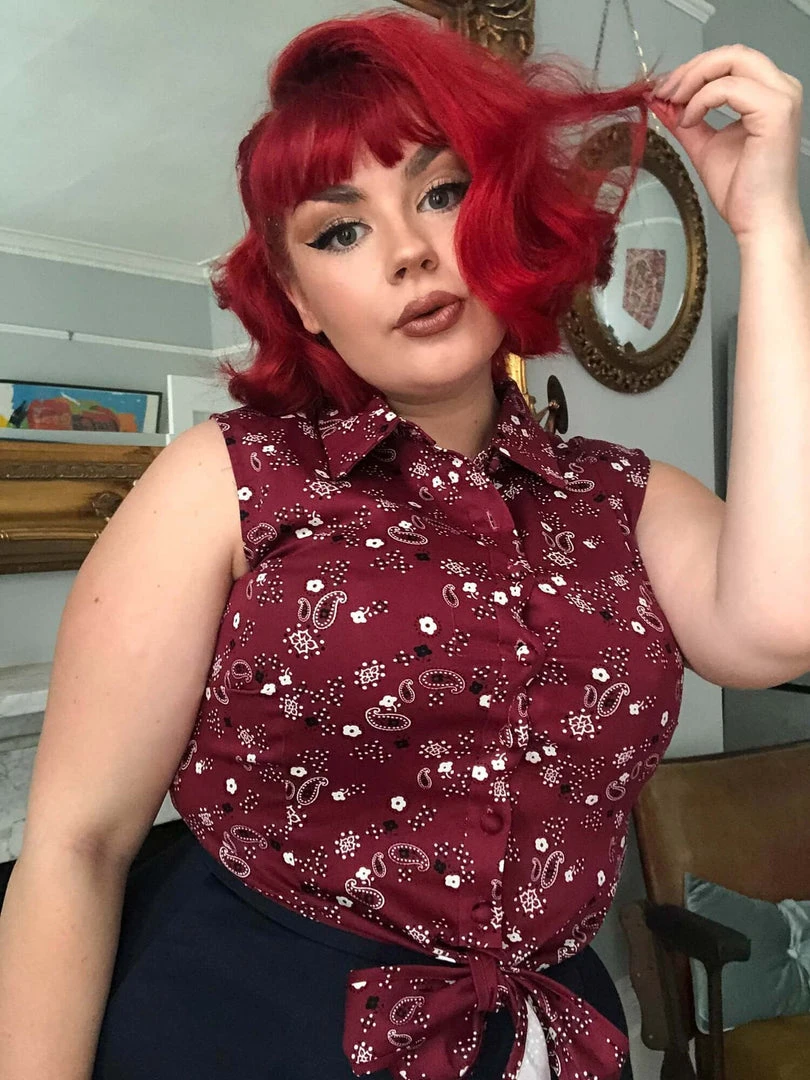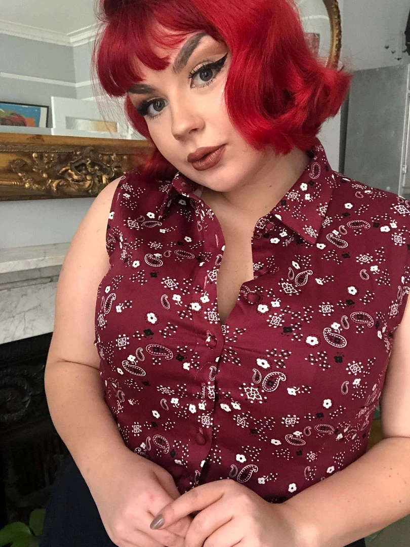 Clarabella is a shorter model that ends around the waist. Just as stunning with high-waist jeans, as with an elegant high-waist skirt! And did you see the little collar, and of course the cute buttons she closes with? This sleeveless gem is made of a lovely cotton-mix with slight stretch, that is a pleasure to wear, whatever your plans may be 😉