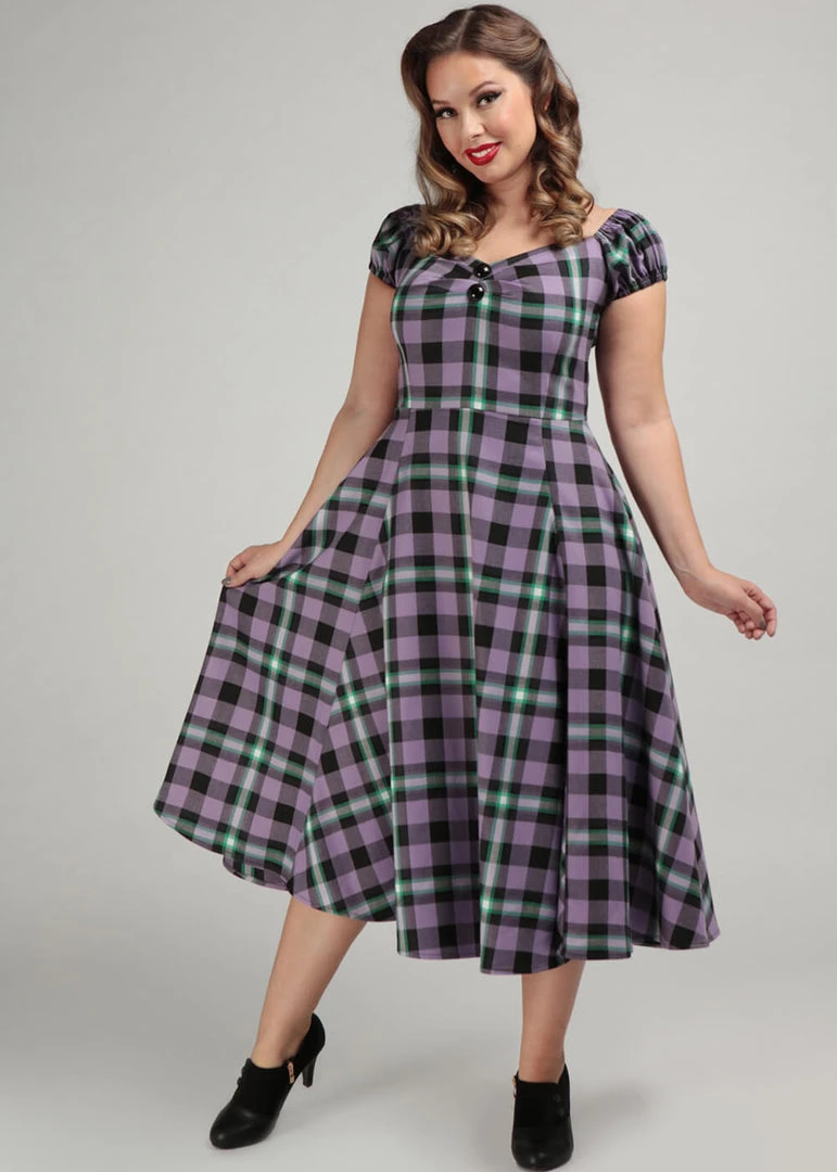 The Dolores dress is the classic by Collectif, now with a fresh tone of tartan!