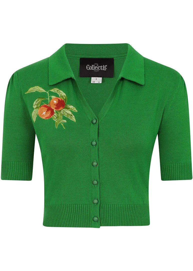 New In Collectif Jan Vintage Peaches 50’s Cardigan Green