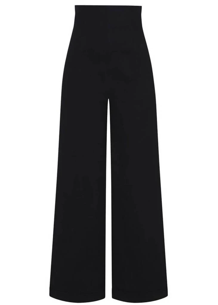 Because of her high waist and from the hips flared out, folded trouser legs she has that dreamy vintage fit which you can also perfectly use for a nautical look. Especially with such comfortable denim-cotton with stretch! She closes with a zipper on the back.