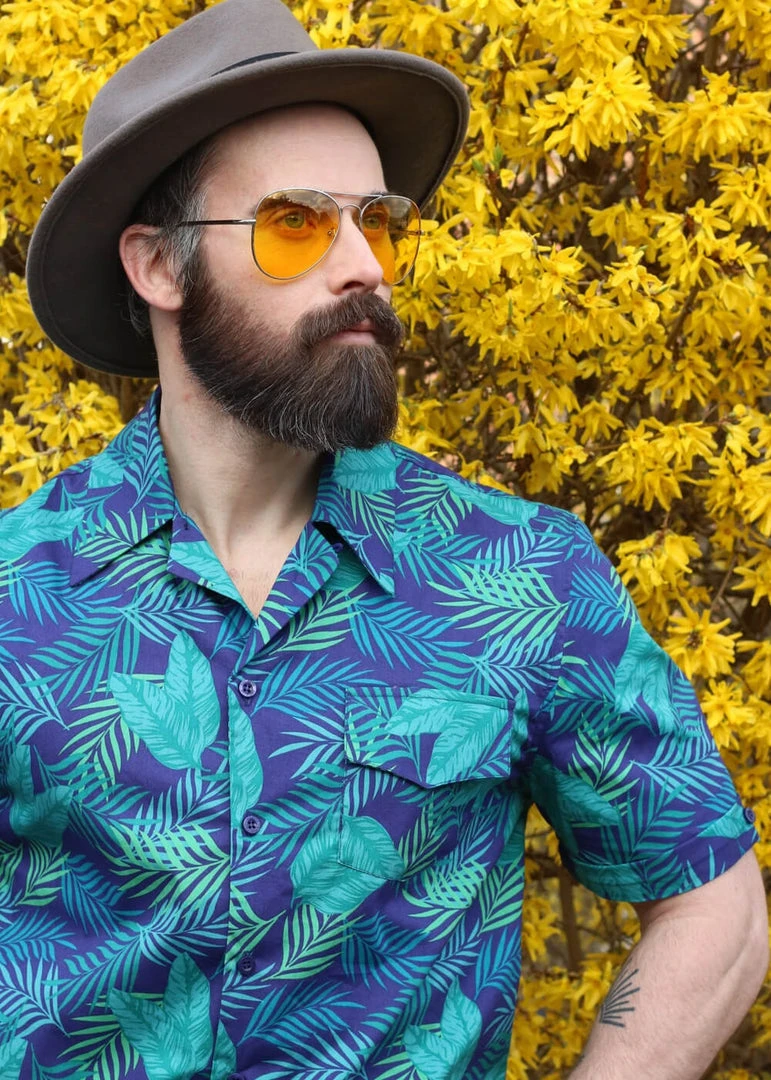 Cesar will always be on top of the pile! This striking shirt has a summery leaves pattern you’ll want to wear anywhere. Car-meeting? To the office? A night out? Rock ‘n Roll festival? Cesar is your man! Made of an airy cotton/viscose mix fabric with no stretch giving those ultimate retro colours a perfect place to shine. This shirt closes with smooth buttons on the front.