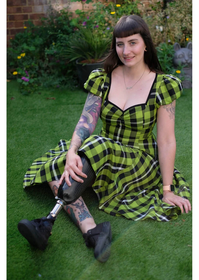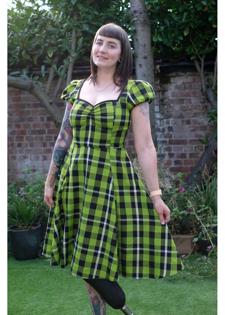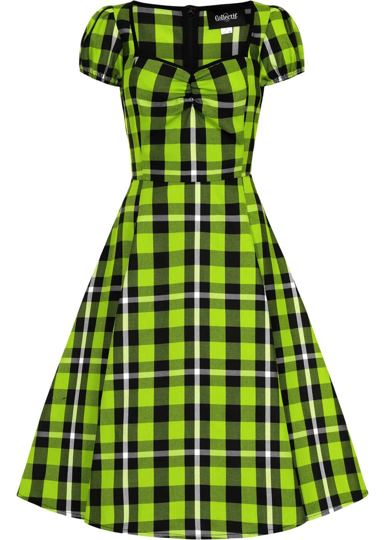 From the waist down she flares out into a playful skirt which you can adorably combine with one of our petticoats. She is slightly shorter than most Collectif dresses, with a height of 1,70 she reaches down to the knee.