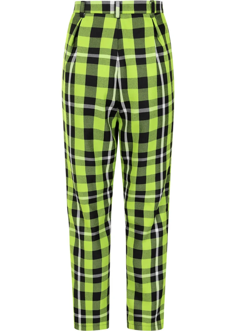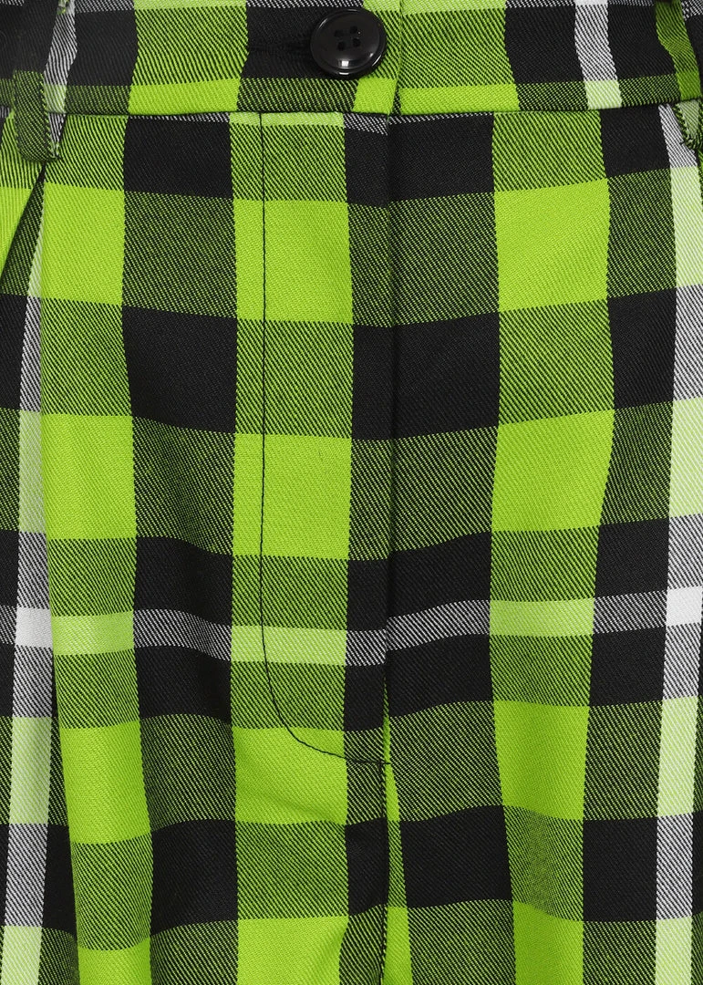 A playful 60’s Mod look in the blink of an eye with Rada and her black, grey and jade green check pattern! The waist is close-fitting, from the waist downwards the model is relaxed. Best of both worlds 😉 She closes with a zipper and a button in the front.