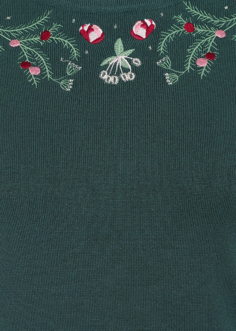 How elegant the are, her embroidered flowers on the front an the puffy long sleeves… This gem is made of a mix with knitted viscose, which gives her slight stretch and makes her feel incredibly soft. The lower seam and the ends of the sleeves are ribbed for a nice fit and to keep the warmth in. She is long enough to wear her with trousers, but also very flirty on top of a high waist model.