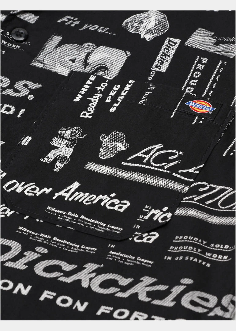 The print is an ode to the history of Dickies and has another plus: It is made of 100% high quality cotton without stretch. Pillager closes with smooth buttons in the front and has short openings on the sides. The Dickies label on the chest pocket can’t be missing, of course.