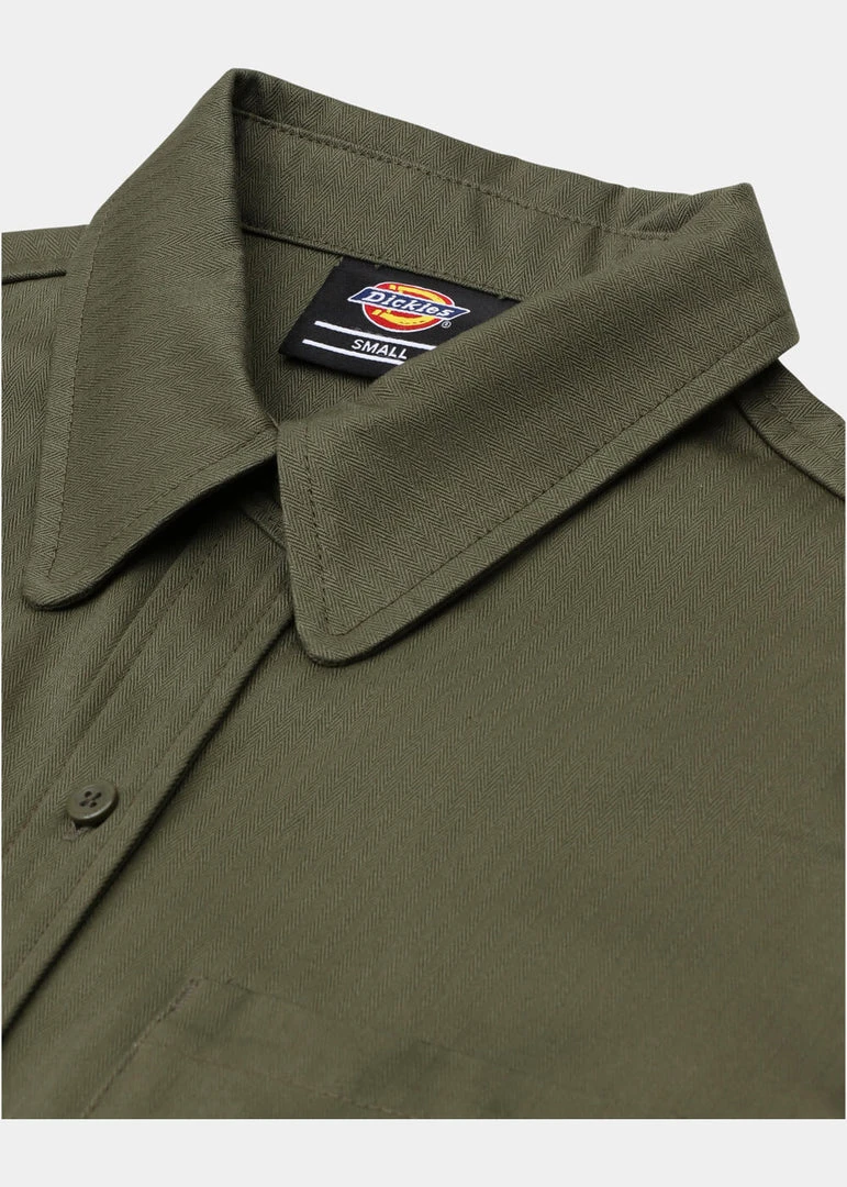 The Herringbone pattern will make Chokio your instant favourite, while her 100% cotton without stretch is lightweight. This shirt with the spicy collar, long sleeves and chest pocket (complete with Dickies label) can be buttoned up all the way, but also worn open over something else.