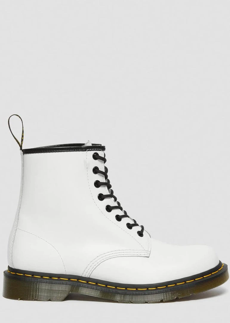 The 1460 is the original Dr. Martens with 8 holes and the recognizable yellow stitching and removeable gel-insoles. They are made of a high quality smooth leather with a soft shimmer and have removable gel insoles.