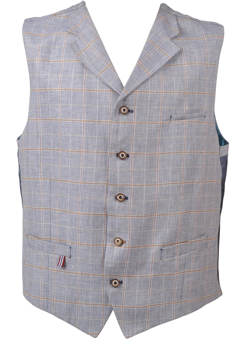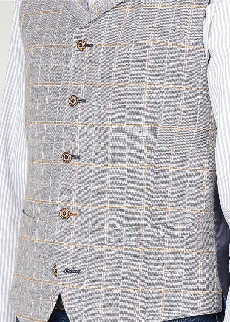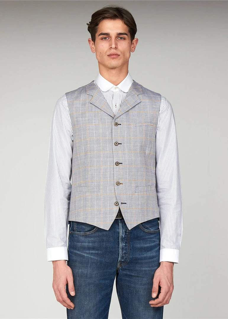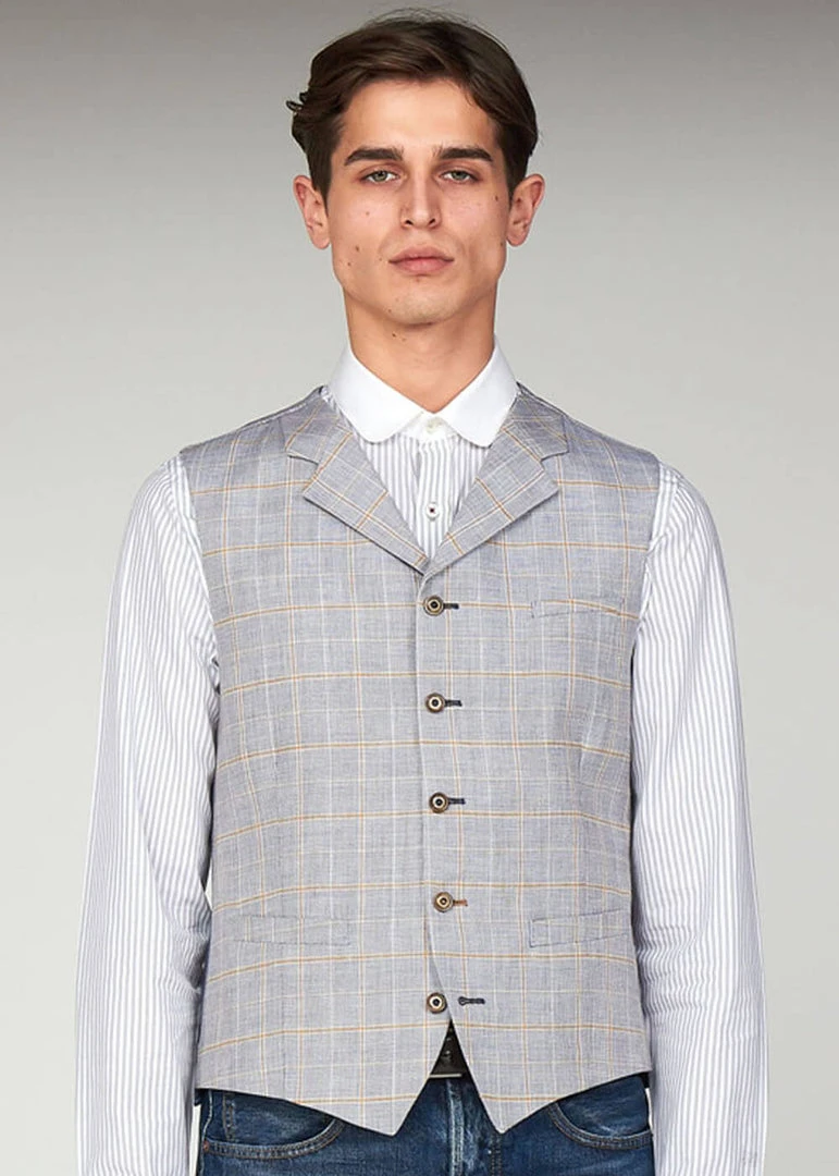 With the Edgar waistcoat you’ll be looking sophisticated even during the summer. Because of it’s airy linnen and wool mix this waistcoat is perfect for summer and feels nice and airy to wear. Whether it’s for a family picnic or a garden party on a beautiful summer evening! It closes with 5 buttons on the front and has 3 pockets, which you need to carefully open yourself.
