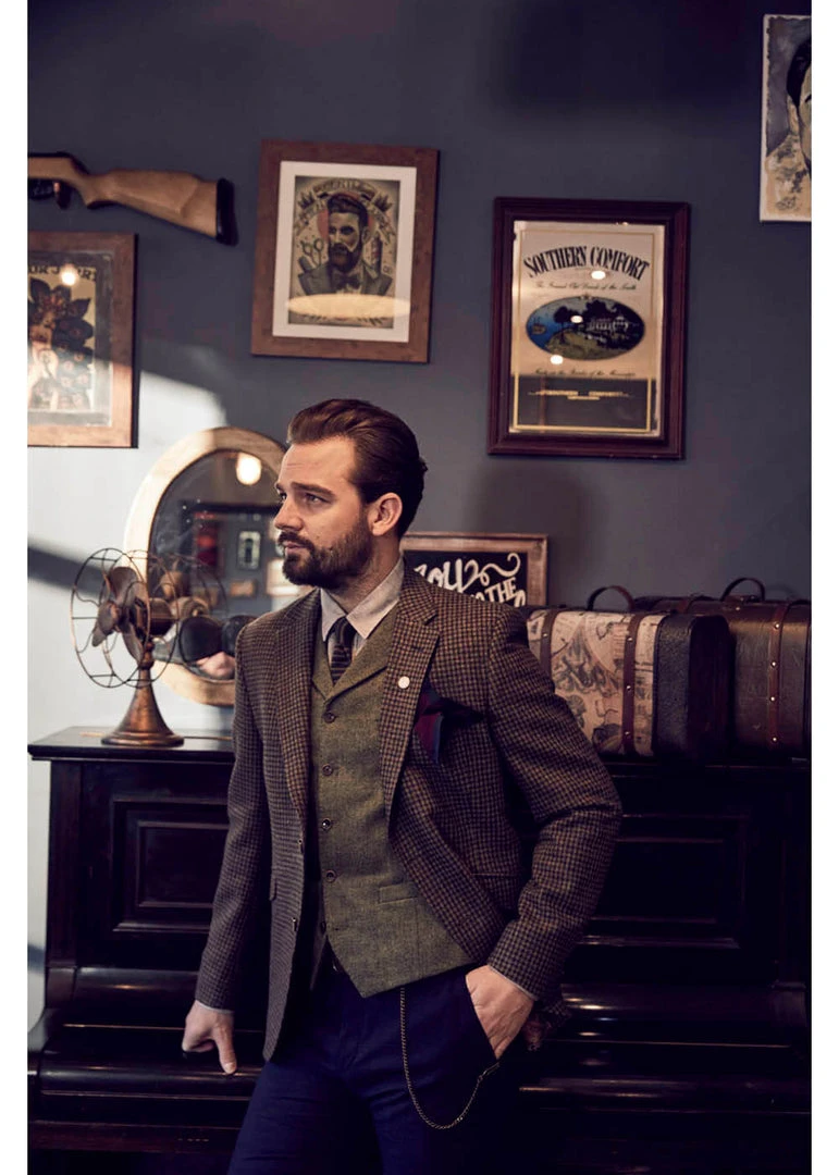 New In Gibson London Martin Check Colbert Jacket Green