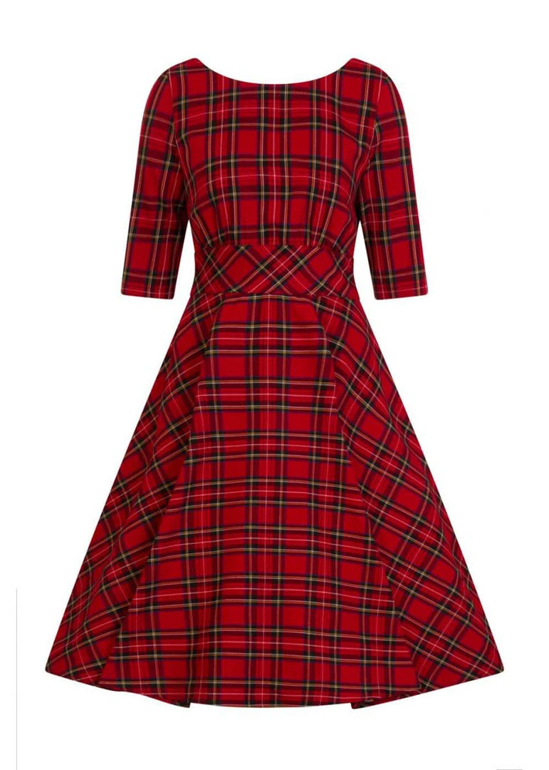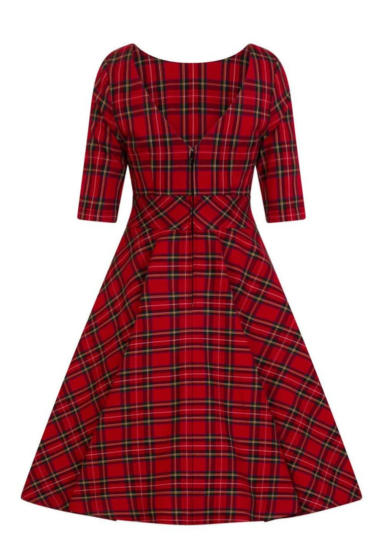 Irvine is bound to become your go-to dress this fall! The stylish tartan fabric has a slight stretch and with her 3/4 sleeves she’s perfect for colder days. The darts on the bodice and the v-shape on the neck give it a lovely fit.