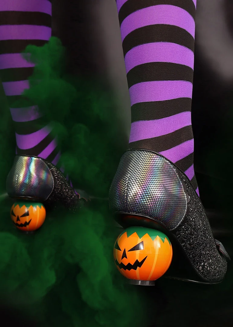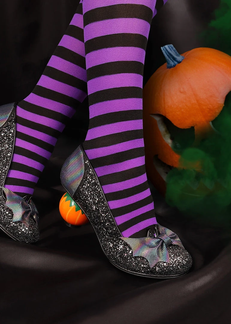 Pumpkin Patch is the perfect Halloween pump, with her pumpkin heel, complete with devilish smile! The heel is only 5 cm high and wide, making you walk comfortably. The sides are decadently adorned with glitters. The heel is glossy with metallics, which also returns in the bat-bow on the nose. They’re giving you the chills, right? In the best way, that is 😉