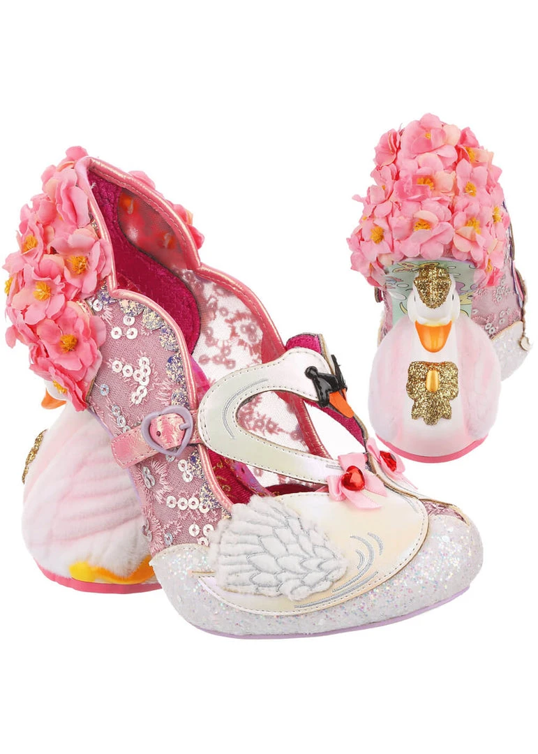 Don’t they remind you of those swan pedal boats? They have a romantic couple on the front (complete with the lovey hearts), and even the 9 cm heel is shaped like a swan!