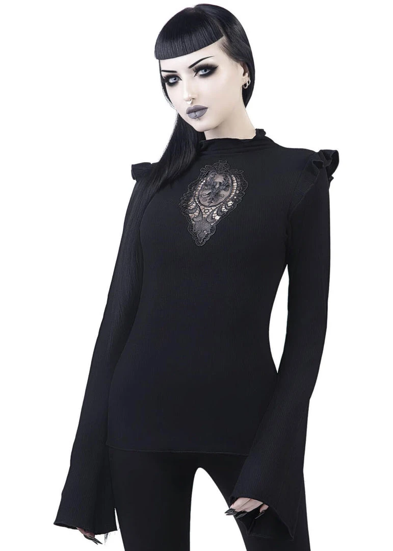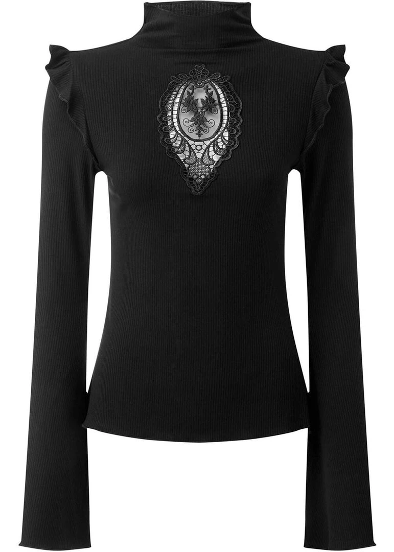 With her lace insert she’s a true eye catcher, while the decoration by the shoulders add a strong look. She’s made of a soft ribbed jersey fabric and has a lovely stretch while feeling amazingly comfortable to wear.