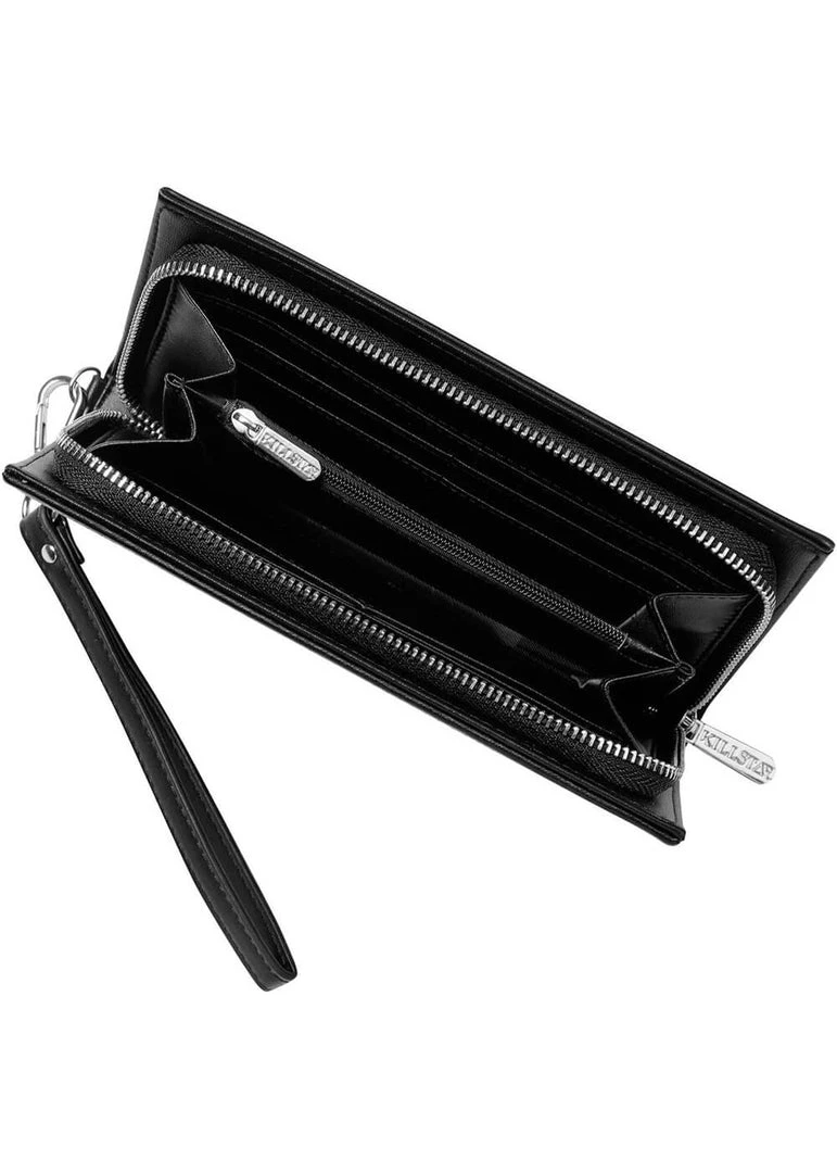 It’s black, it’s stunning, and luckily, it’s spacious! This beauty has more than enough room for 12 cards, 5 compartments for bills, a big zipper compartment for change and an extra zipper pocket on the outside…