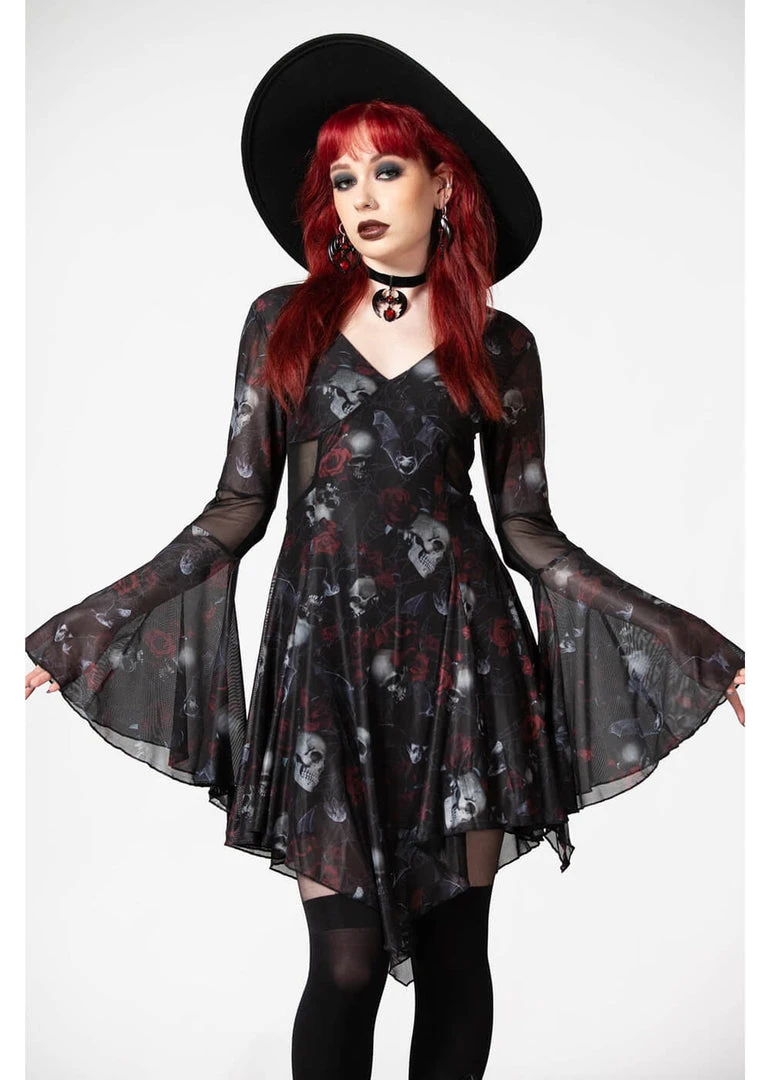 New In Killstar Bellflora Mesh Dress Black