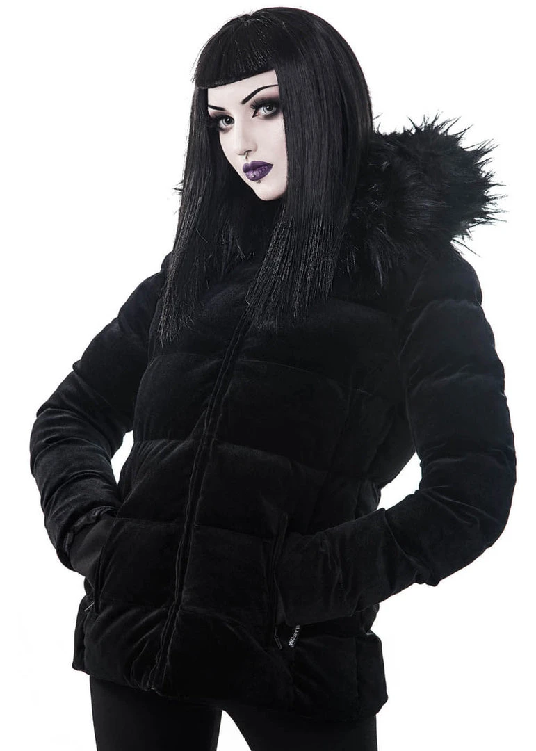 New In Killstar Lisa Luna Velvet Padded Jacket Black