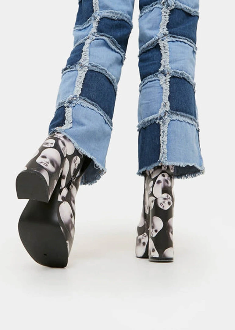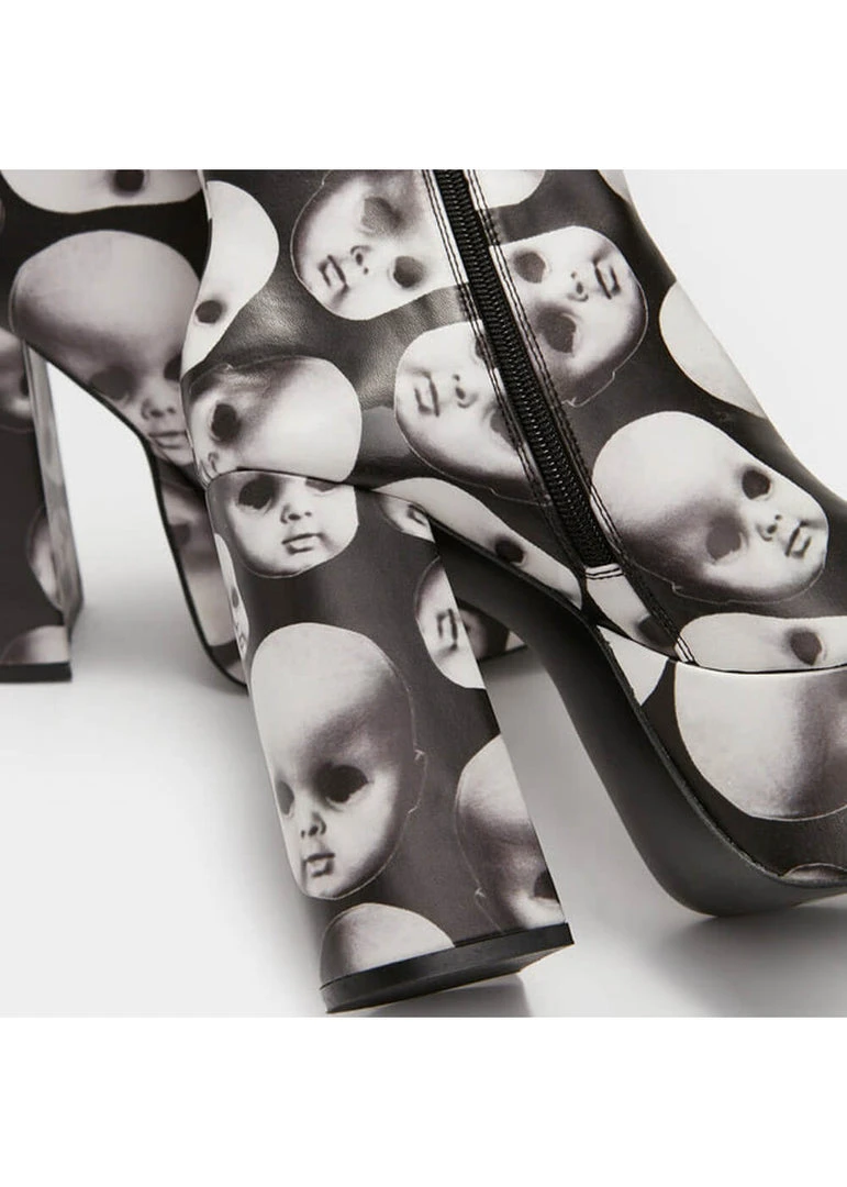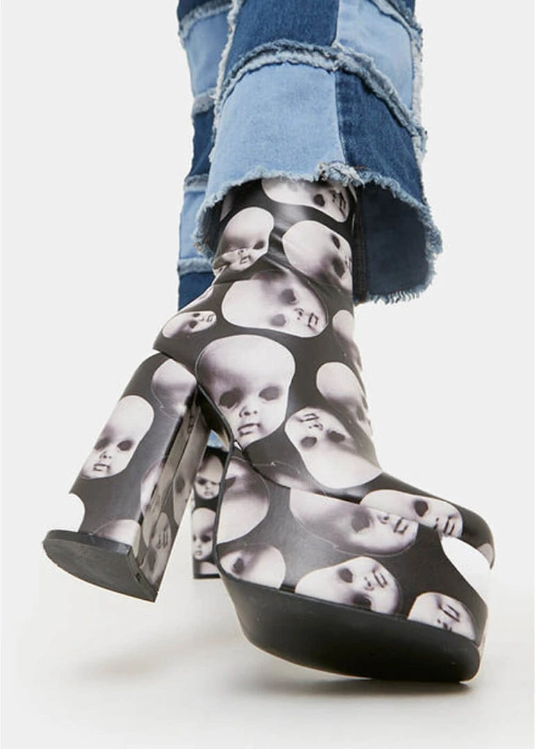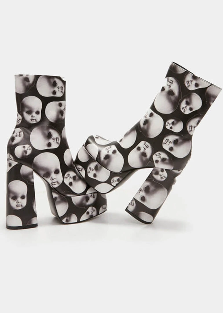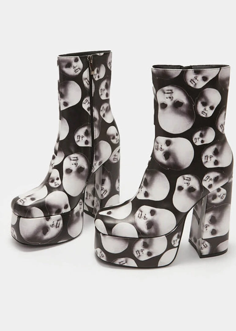 New In Koi Footwear Dead Silence Doll Heads 80’s Platform Boots Black