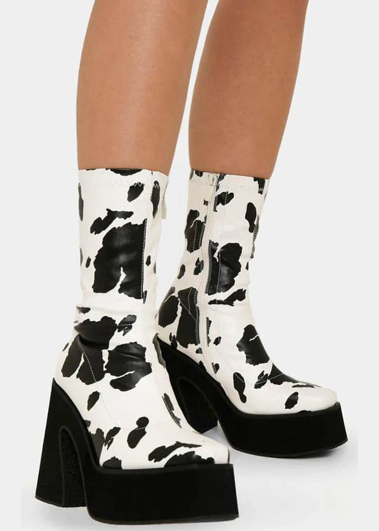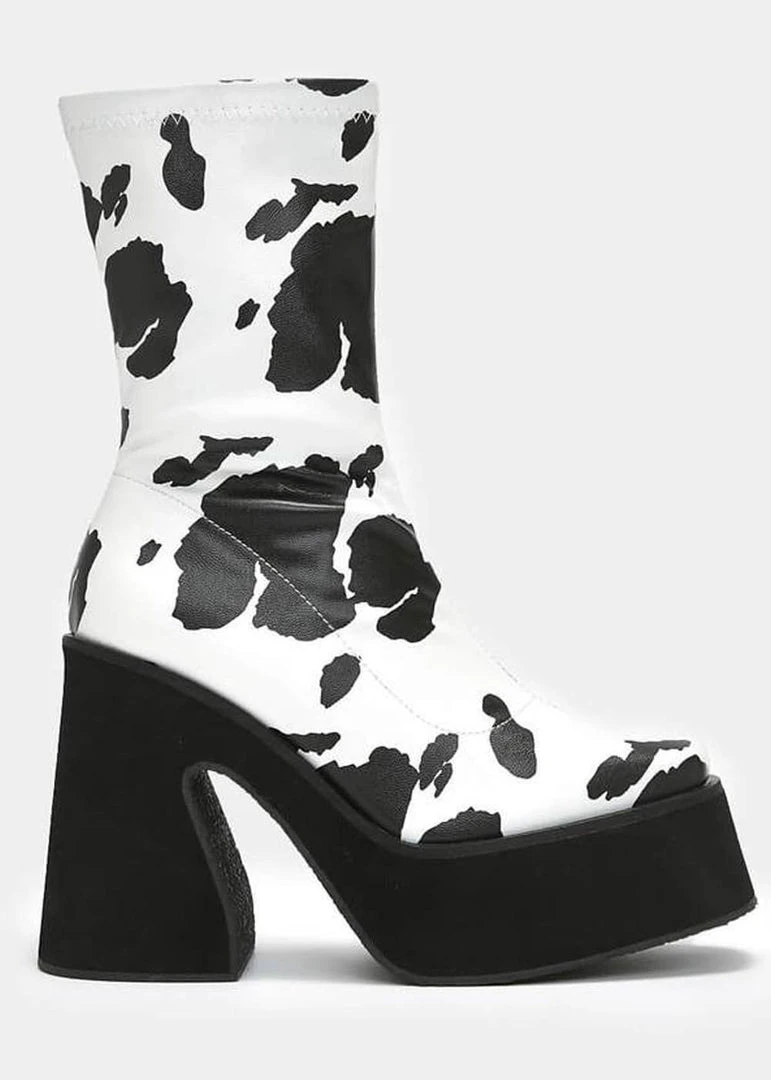 This cutie wins the price for ‘most groovy boot’, it has a curvy heel and a platform! Add a 70’s twist to every look with these gems, that walk extraordinarily comfortably with their 3,5 cm platform on the 11 cm heel and close with a zipper on the inside. They’re made of a high quality vegan faux-leather with a subtle gloss. Check our sizing chart for the length of the insoles.