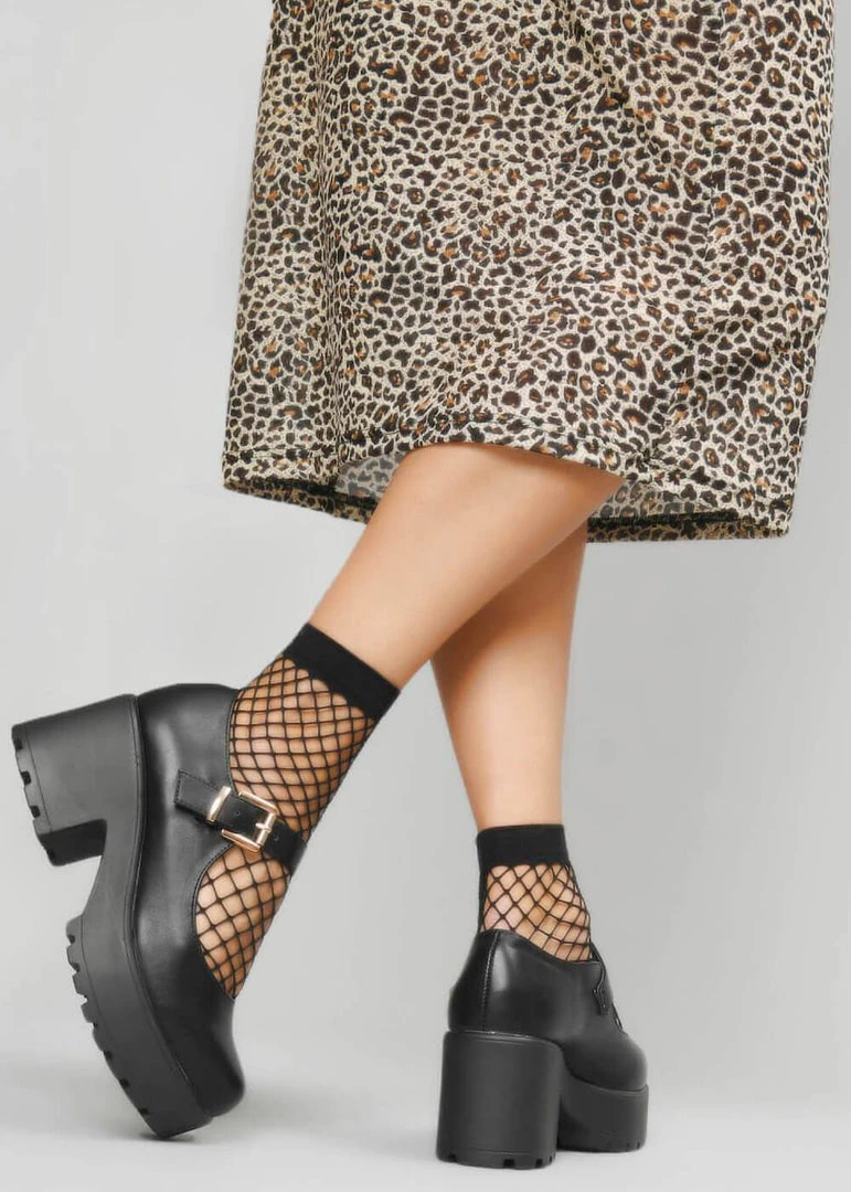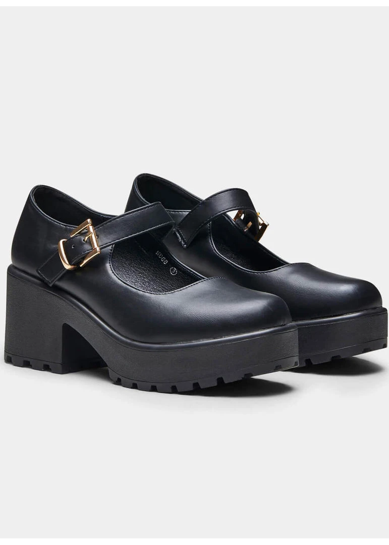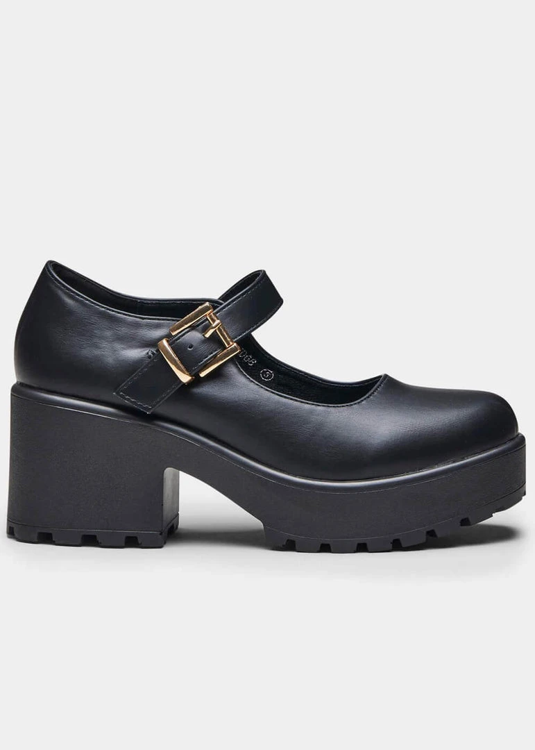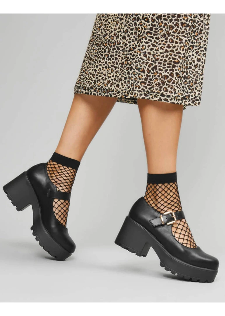 Tira is exactly the type of Mary Janes you’ve always wanted, with her adjustable strap with the silver coloured buckle! The heel is 6,5 cm, so without the 3 cm platform there’s only a height difference of 3,5 cm, how lovely 😉 The The high-quality faux-leather is a dream to wear and, just like the rest of the shoe, 100% vegan.