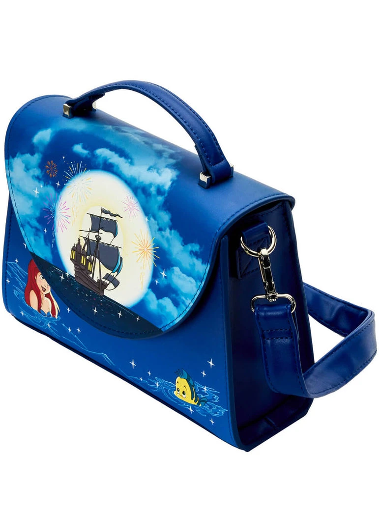 New In Loungefly Disney Little Mermaid Ariel Glow Fireworks Crossbody Bag Blue
