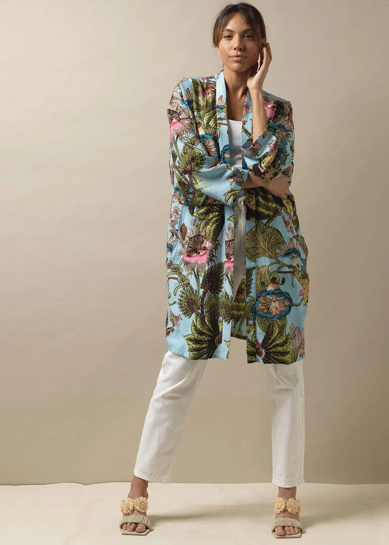 New In One Hundred Stars Eccentric Blooms Midi Kimono Sky Blue