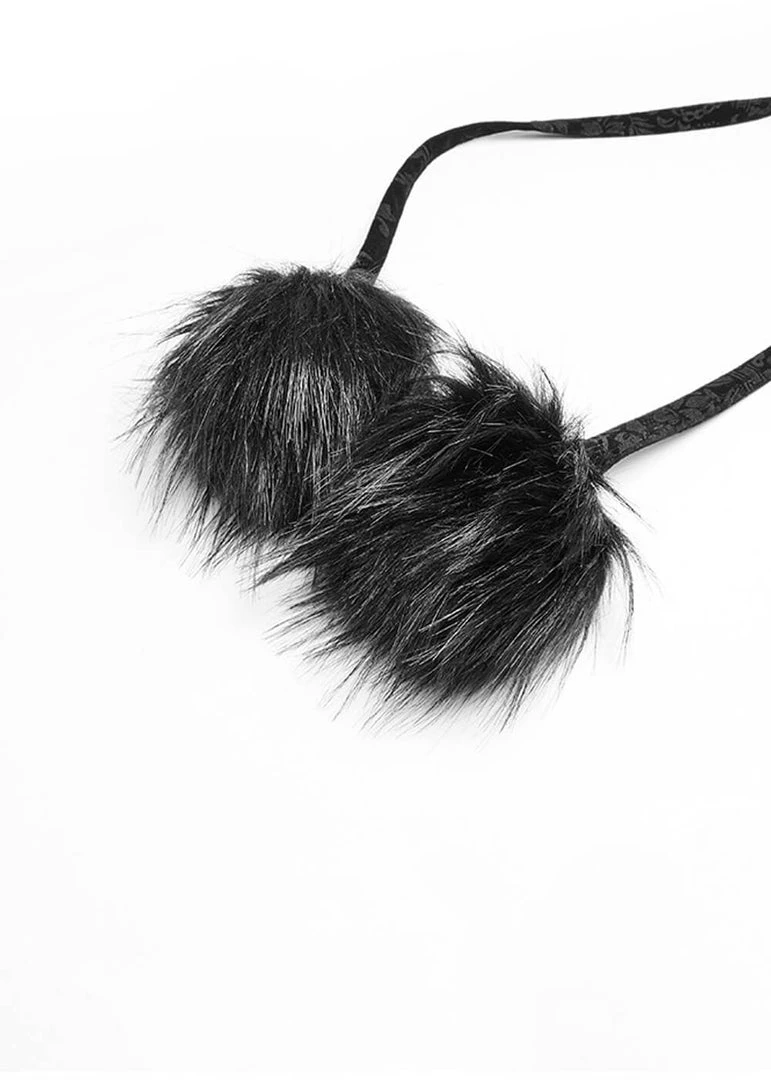 The big hood is adorned with faux-fur, that returns in the pompoms at the end of the strap she closes with. This cape has faux-fur lined openings for your arms, so the sleeves of your outfit or of course a beautiful pair of gloves can shine. She is lined and not padded.